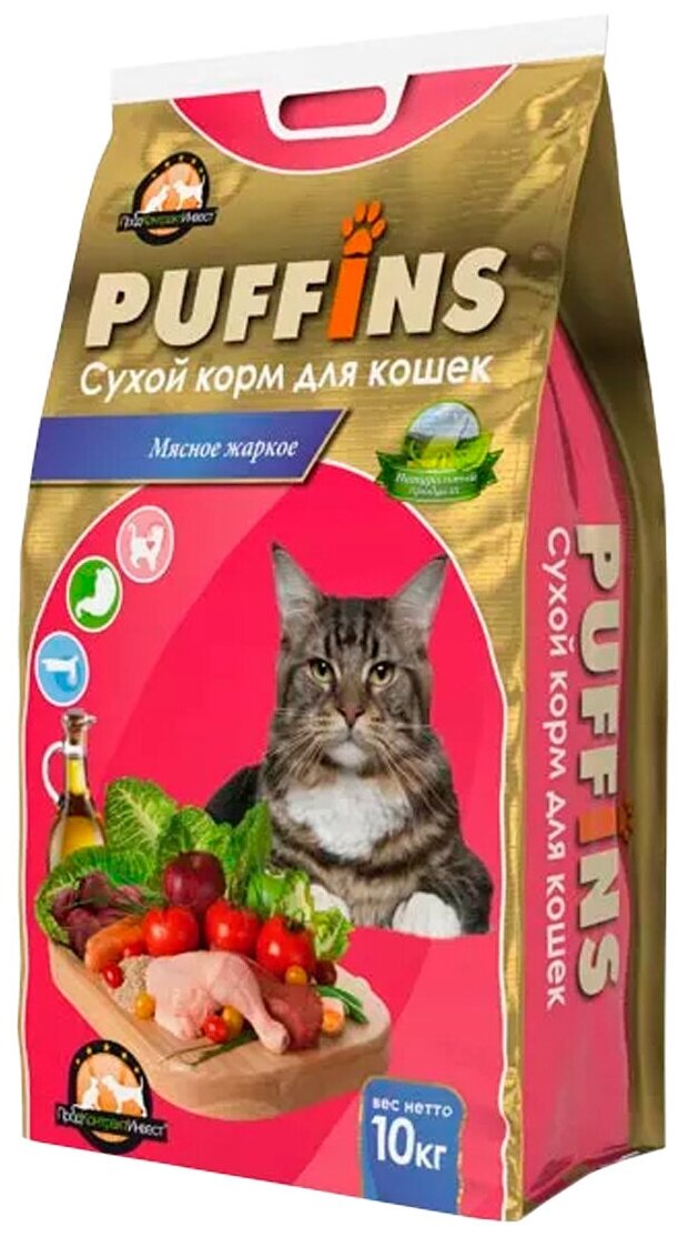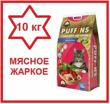 Купить PUFFINS Корм сухой для кошек Мясное жаркое, 10 кг