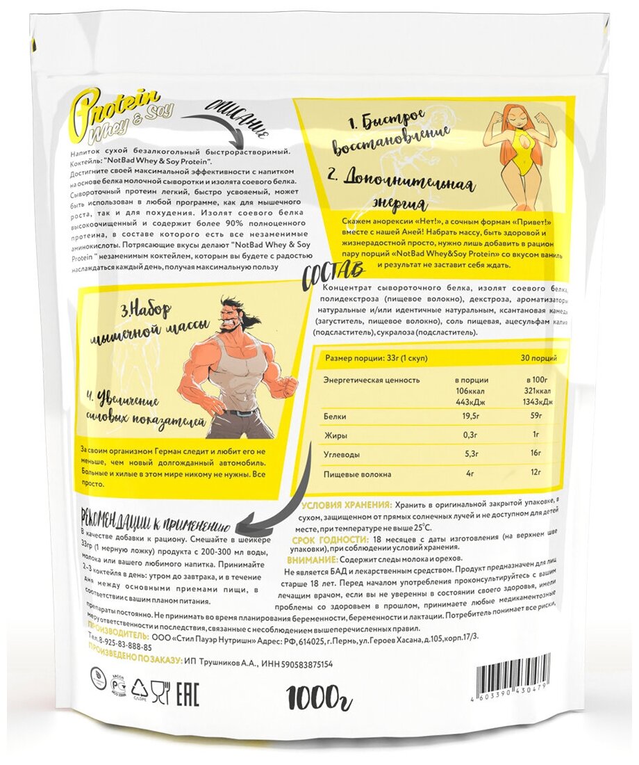 Ниже Вы можете прочитать отзывы на NotBad Protein Whey Soy 1000g (Ваниль), ознакомится с подробными характеристиками, посмотреть интересные обзоры и фотографии на NotBad Protein Whey Soy 1000g (Ваниль).