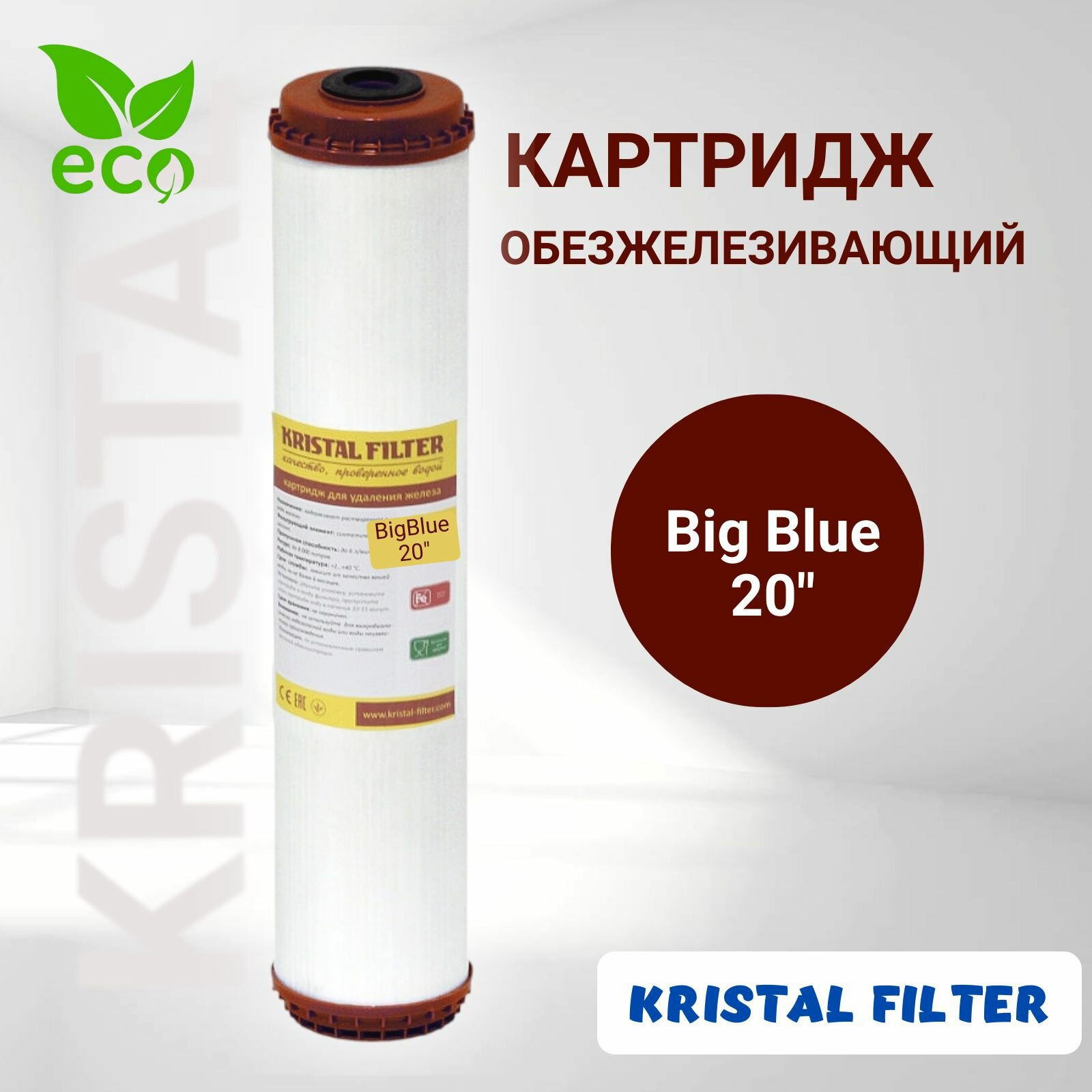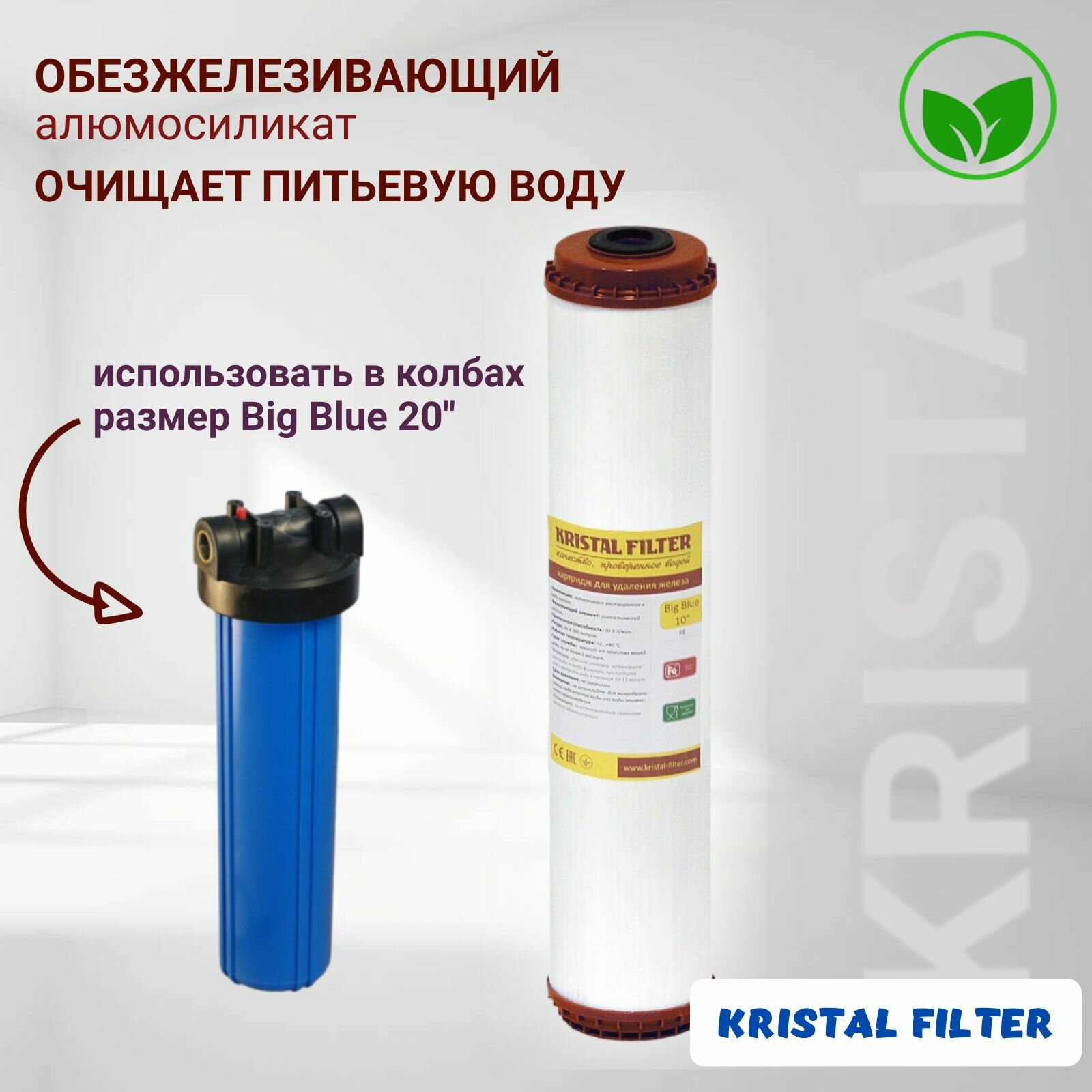 Купить Картридж для фильтра воды, обезжелезивающий, Big Blue 20, KRISTAL FILTER. Для магистрального фильтра. FE