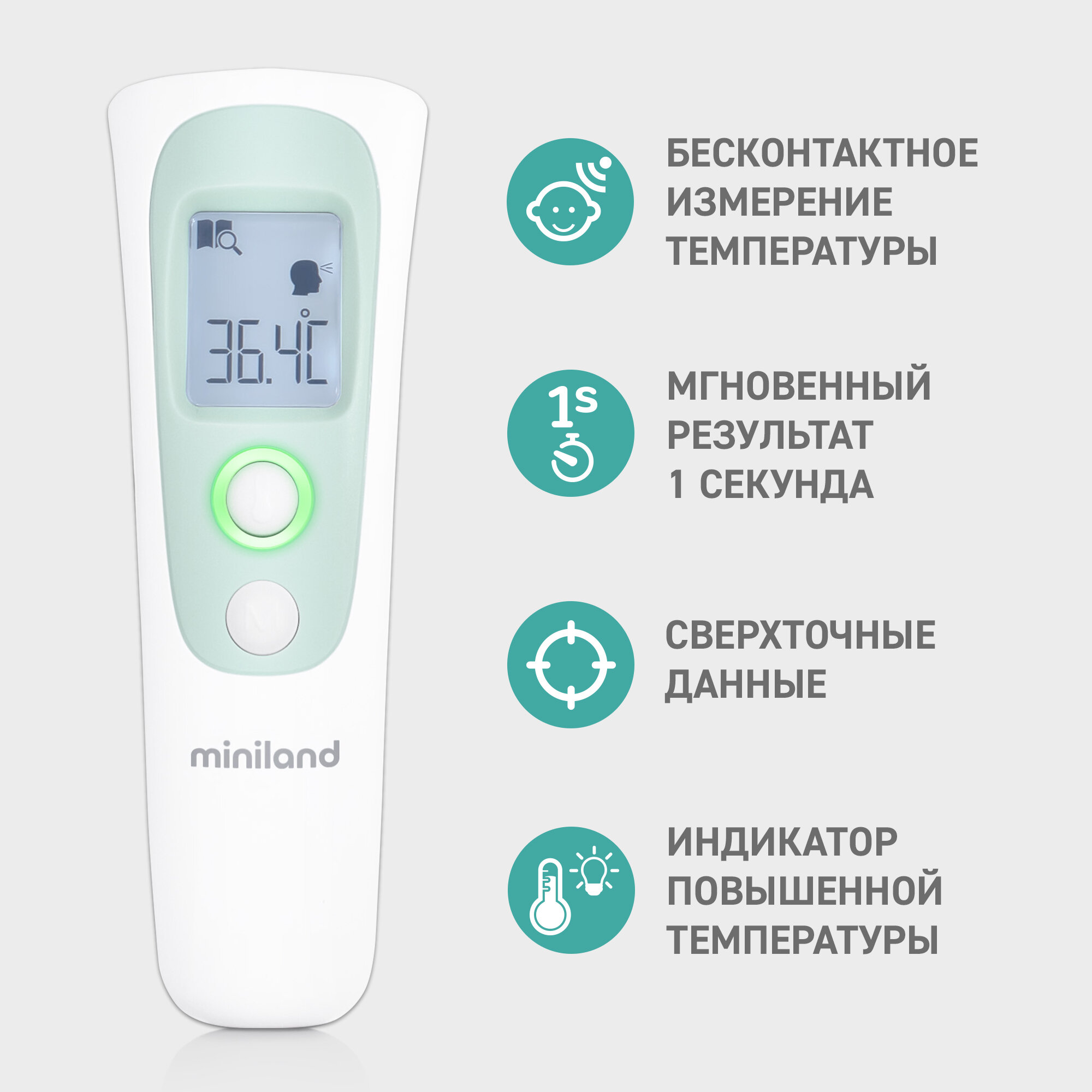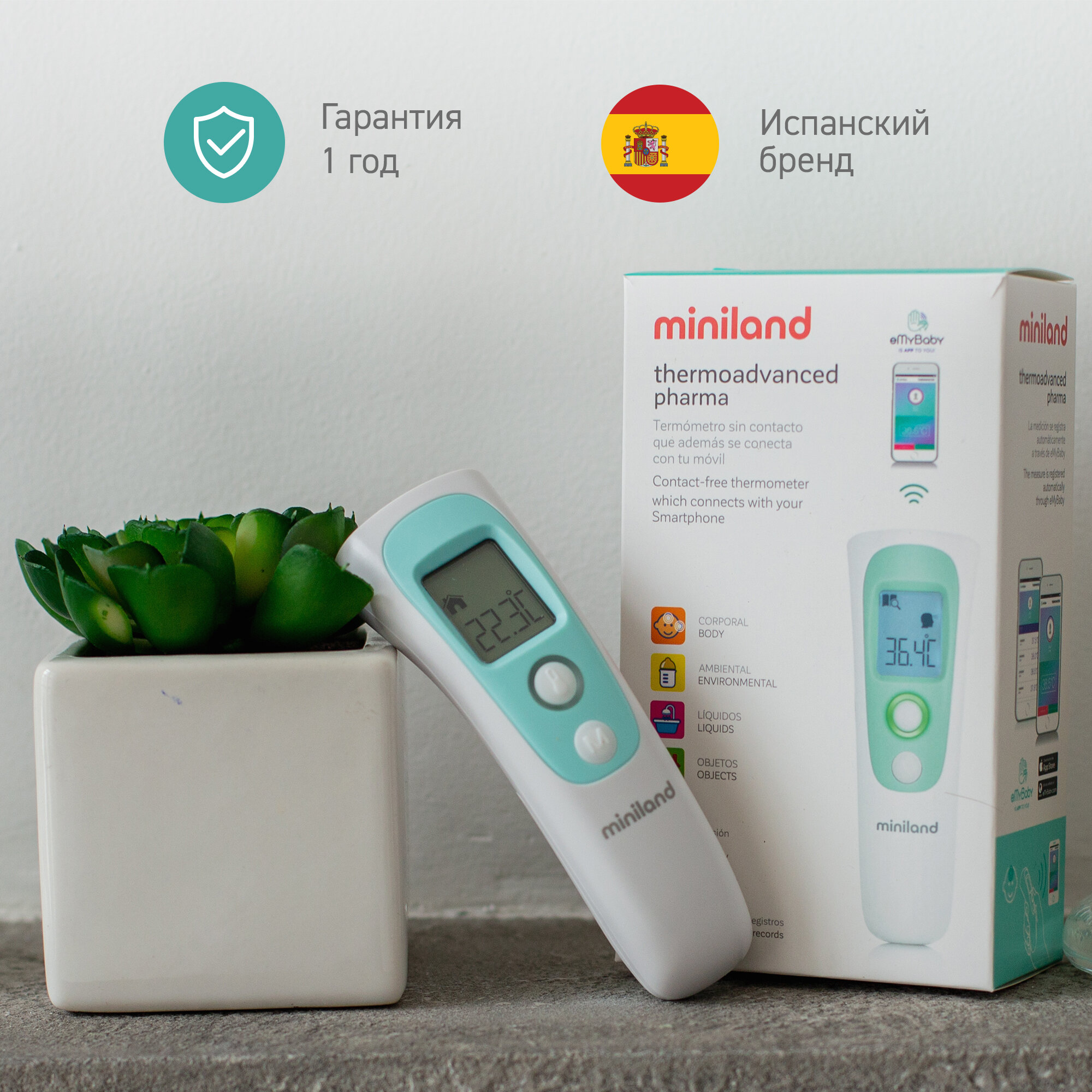 Термометр Miniland Thermoadvanced Pharma бесконтактный многофункциональный интересное: