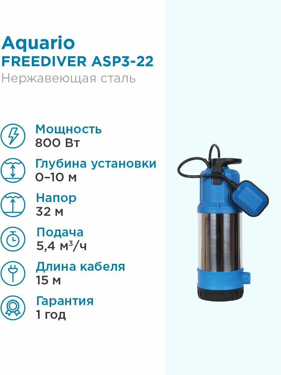 Aquario FREEDIVER ASP3-22, Насос погружной (кабель 15 м) интересное: