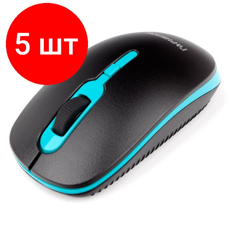 Купить Комплект 5 штук, Мышь компьютерная Гарнизон GMW-460-1, WLS, черно-бирюз, 1600dpi (18842)