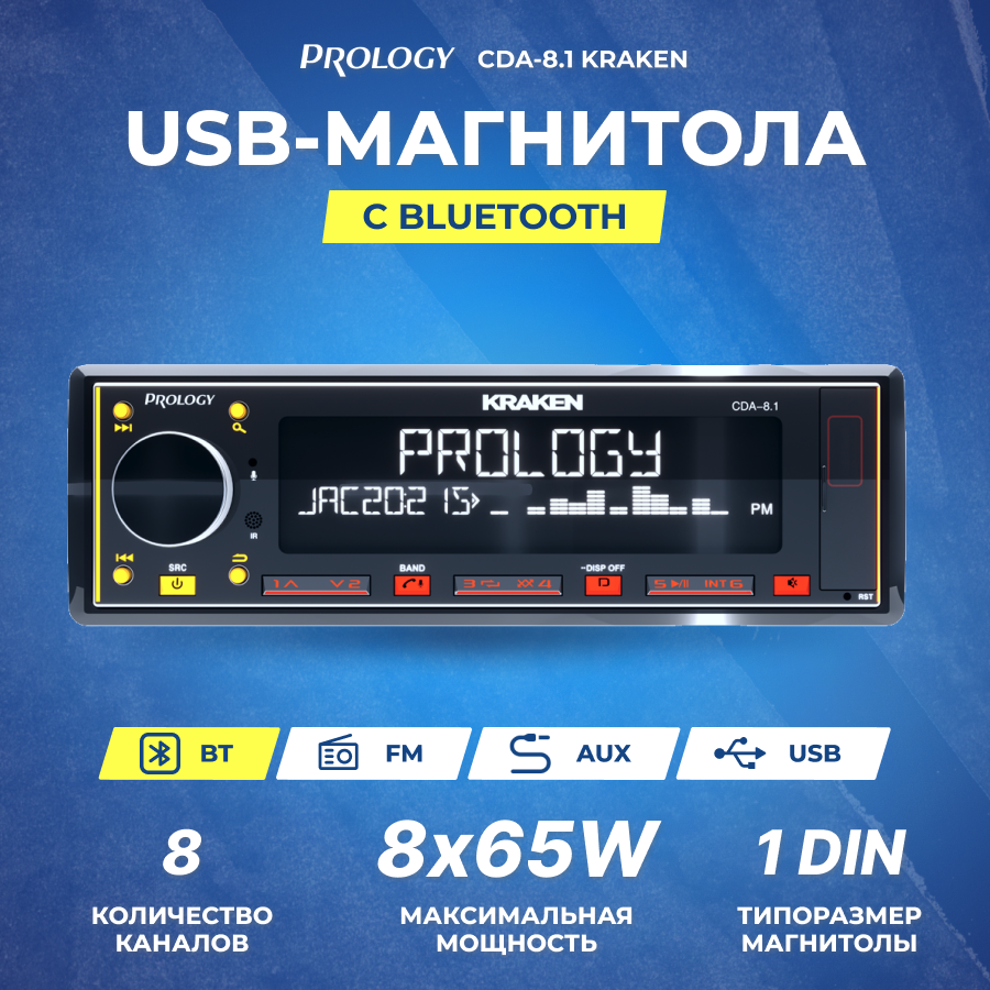Автомагнитола PROLOGY CDA-8.1 KRAKEN FM/USB/BT ресивер с мощностью 8х65 Вт