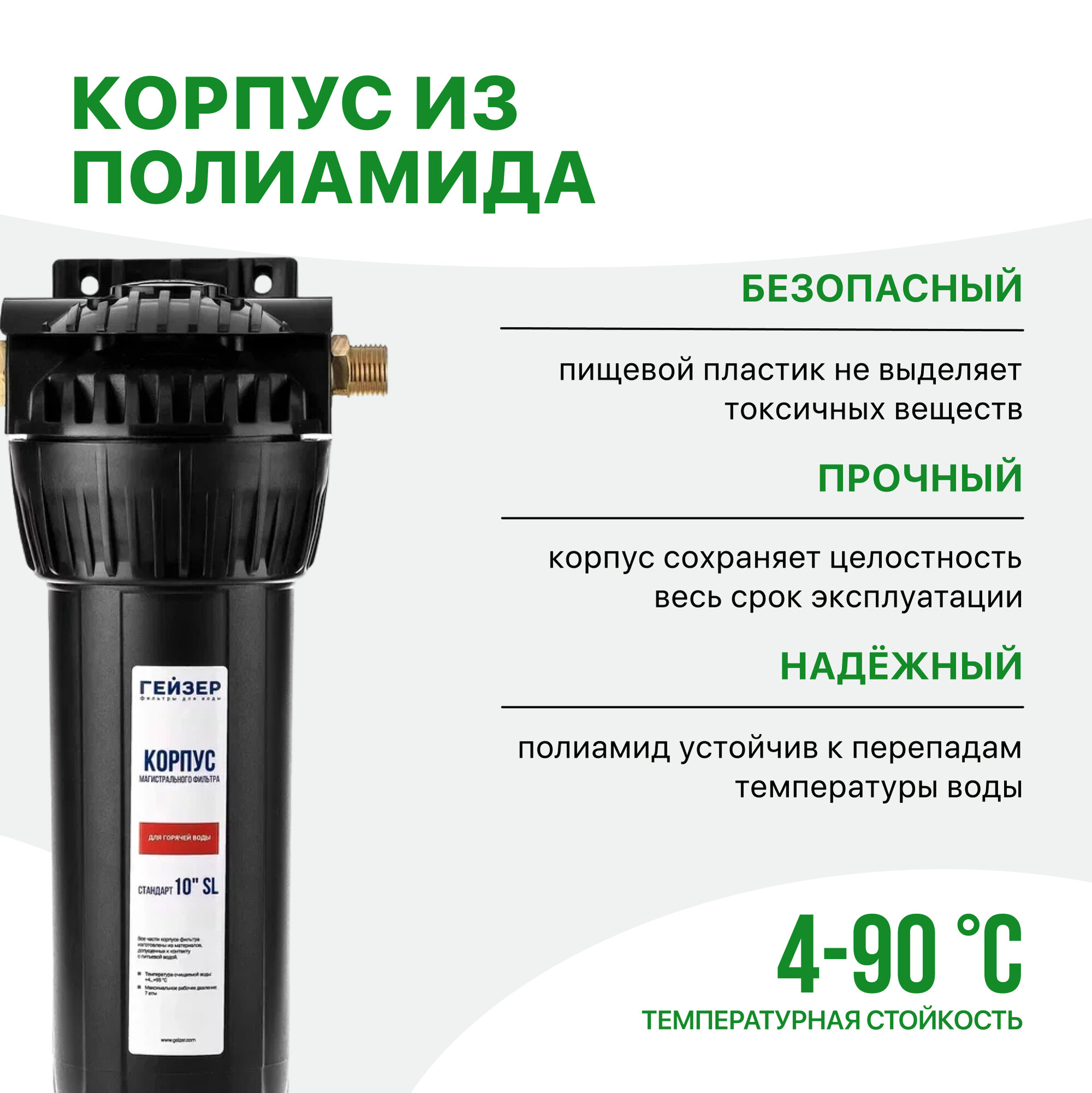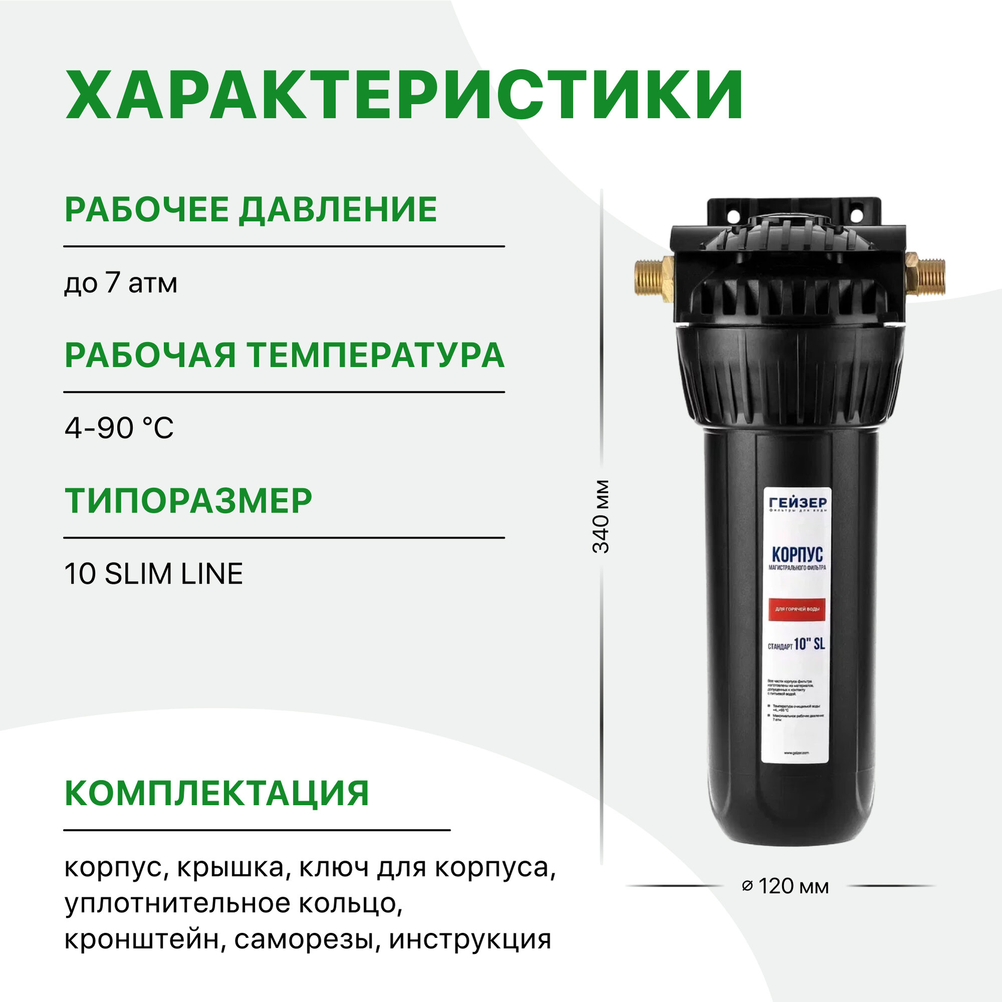 Корпус магистрального фильтра для горячей воды Гейзер, Slim Line 10", 3/4"