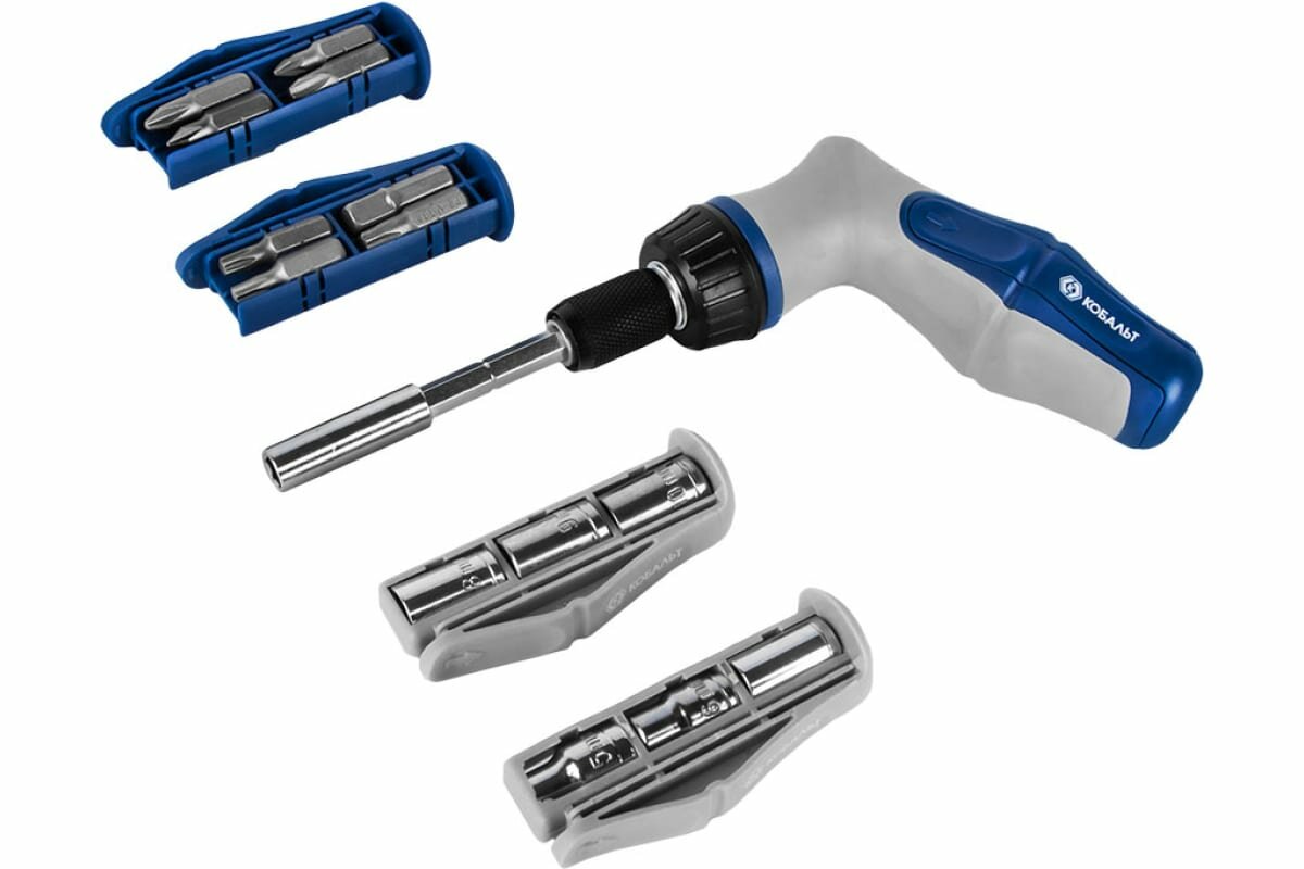 Отверточная рукоятка кобальт Ultra Grip реверсивная с набром бит