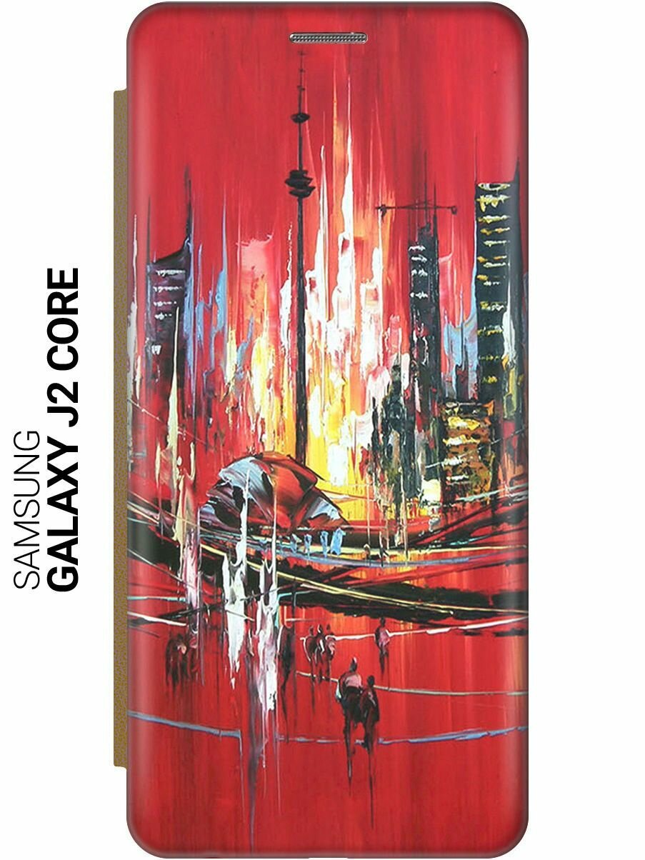 Чехол-книжка на Samsung Galaxy J2 Core / Самсунг Джей 2 Кор c принтом "Акварельный город" золотистый