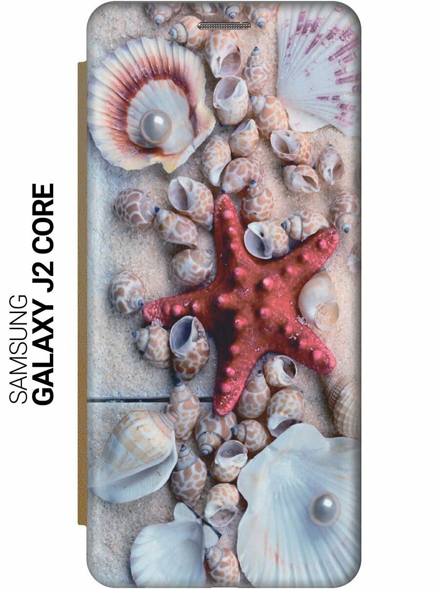 Чехол-книжка на Samsung Galaxy J2 Core / Самсунг Джей 2 Кор c принтом "Красная морская звезда" золотистый