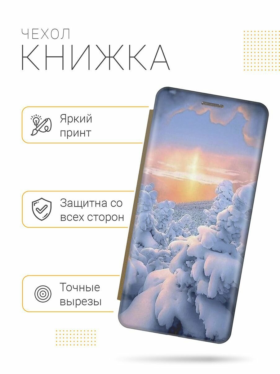 СохранитьЧехол-книжка на Samsung Galaxy J2 Core, Самсунг Джей 2 Кор c принтом "Заснеженный лес" золотистый интересное: