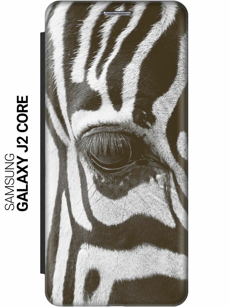 Чехол-книжка на Samsung Galaxy J2 Core / Самсунг Джей 2 Кор c принтом "Глаз зебры" черный
