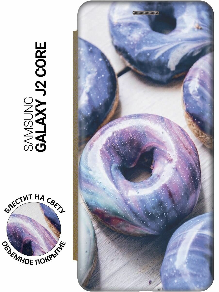 Чехол-книжка на Samsung Galaxy J2 Core / Самсунг Джей 2 Кор c принтом "Пончики в сиреневой глазури" золотистый