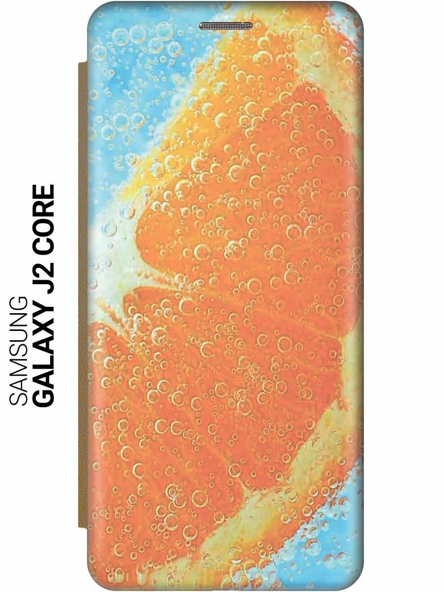 Чехол-книжка на Samsung Galaxy J2 Core / Самсунг Джей 2 Кор c принтом "Долька апельсина" золотистый