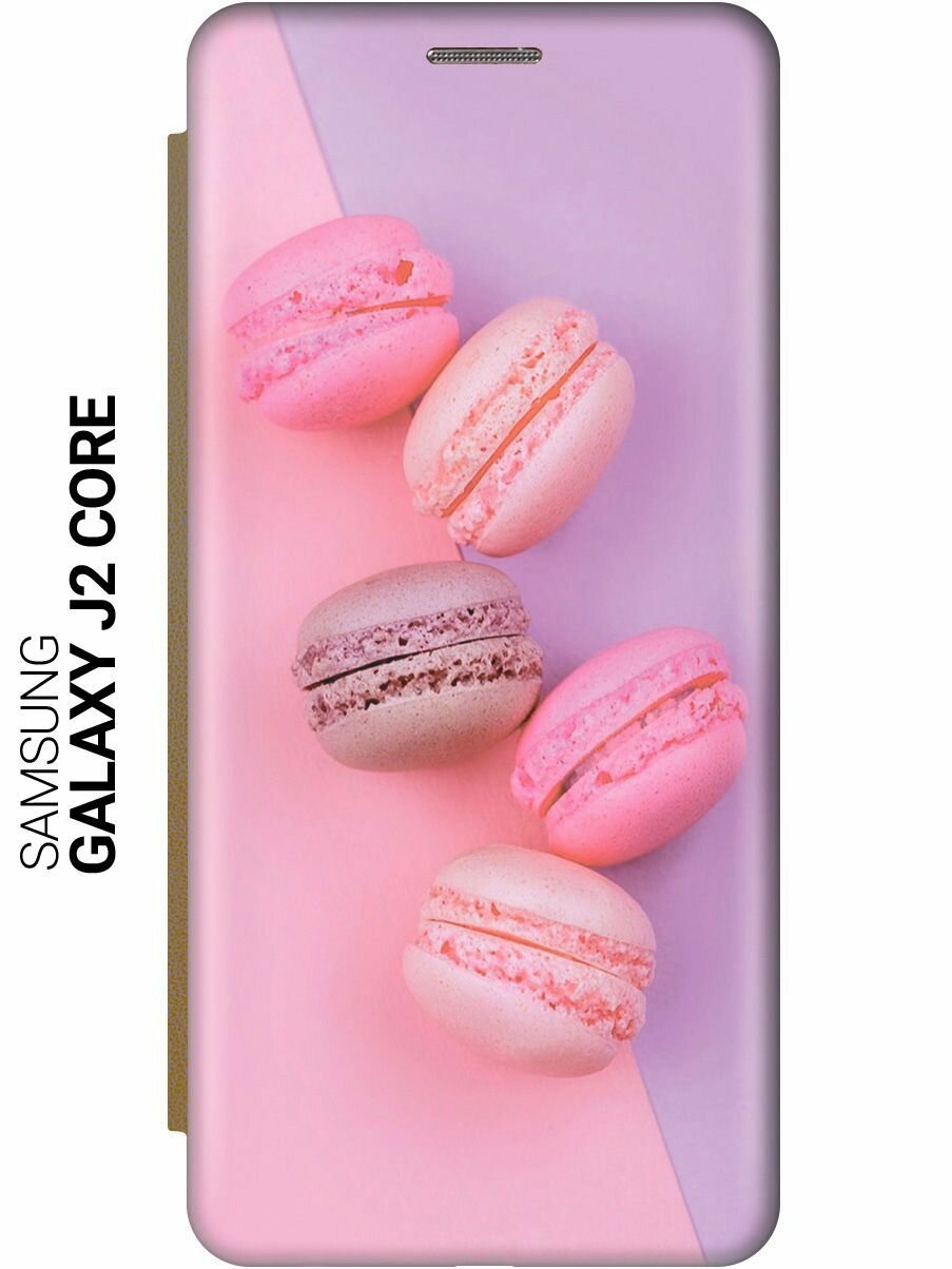 Чехол-книжка на Samsung Galaxy J2 Core / Самсунг Джей 2 Кор c принтом "Розовые макаруны" золотистый