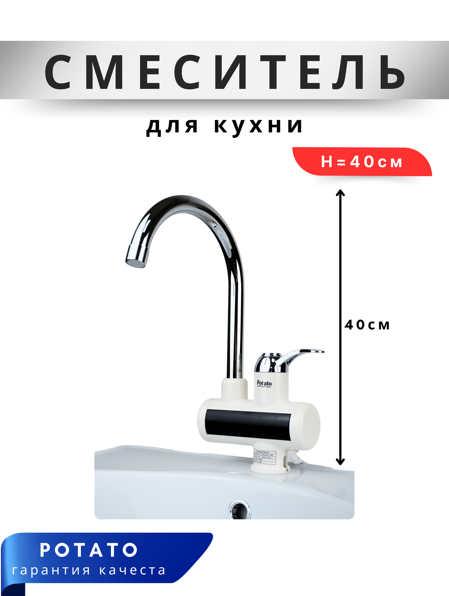 Купить Potato Смеситель для кухни с высоким изливом и с электронагревом P0060 .