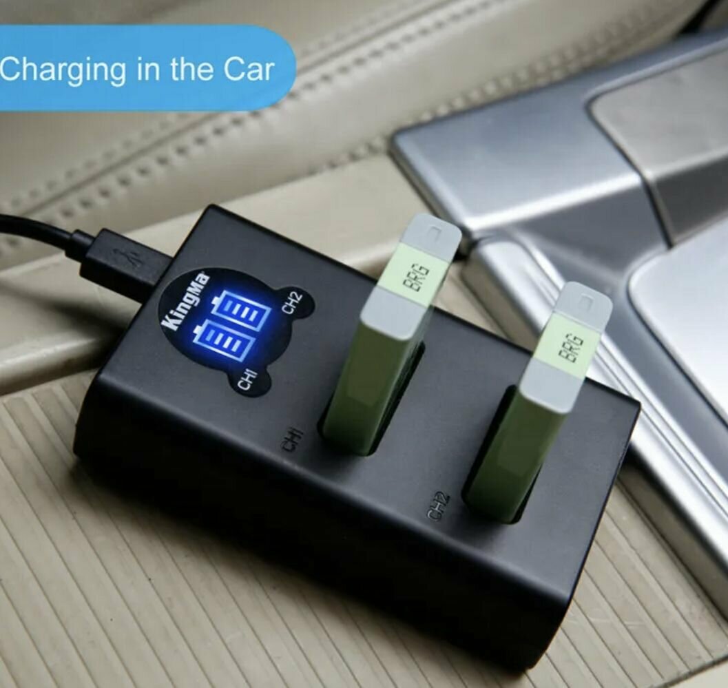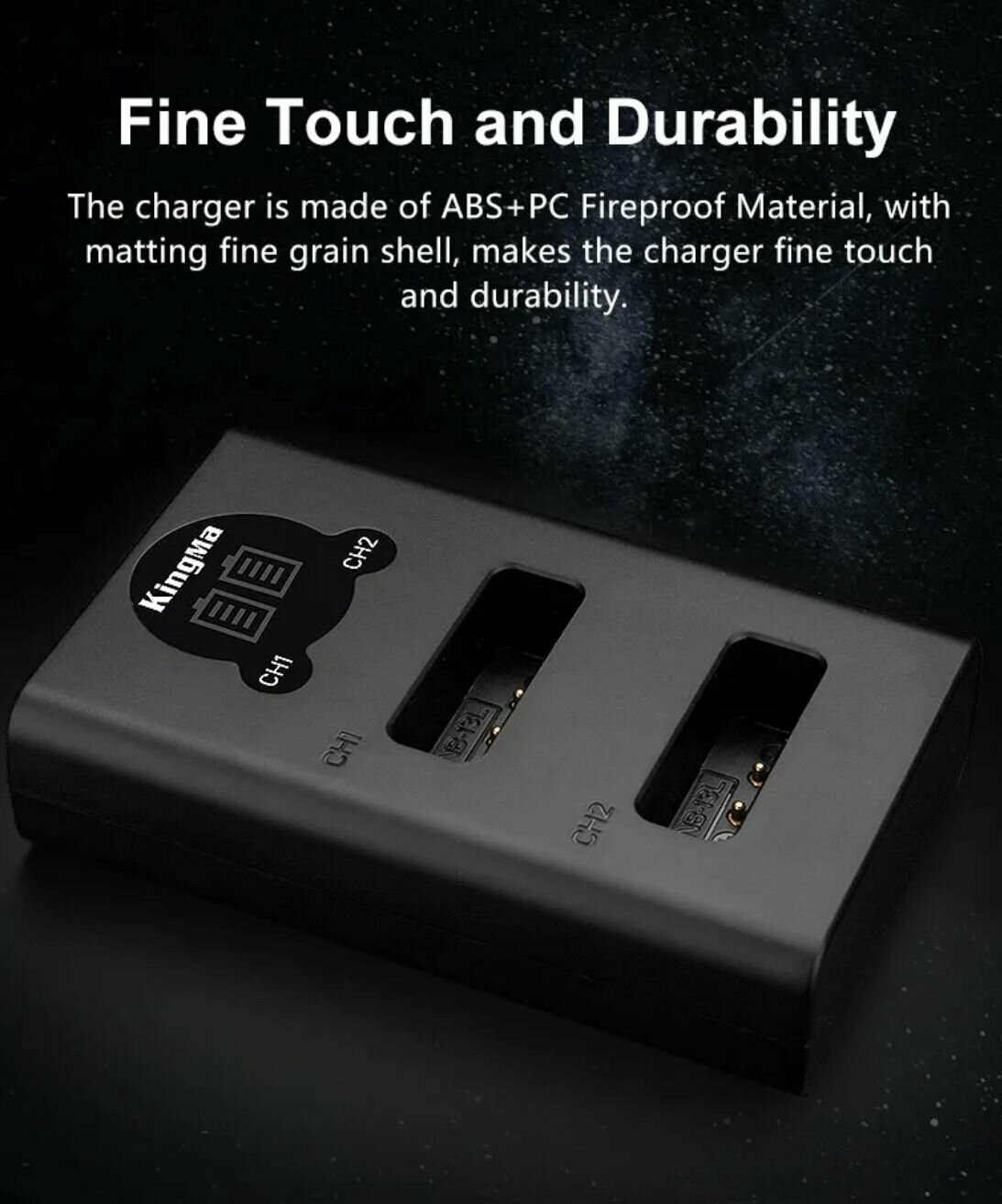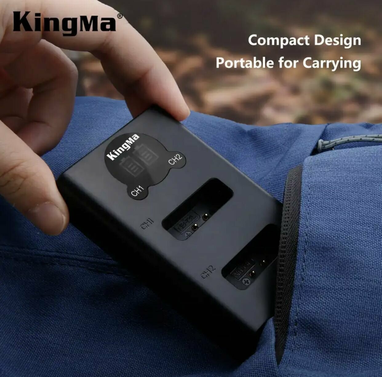 Зарядное устройство c дисплеем и двумя слотами KingMa для аккумуляторов Canon NB-13L. интересное: