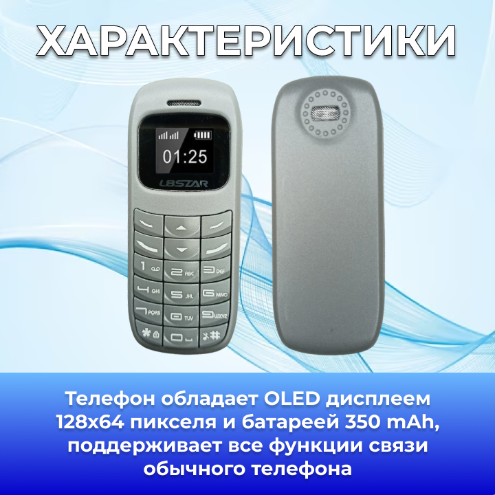 Мобильный телефон L8STAR Мини телефон MB70 с двумя сим картами, синий