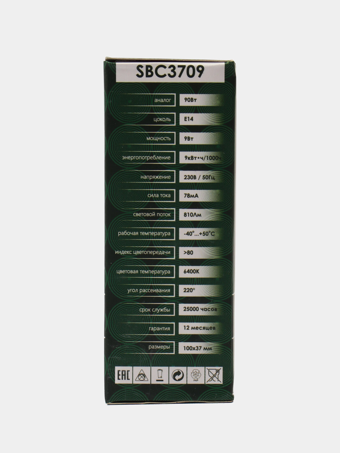 Лампа светодиодная, 9W 230V E14 6400K C37, SBC3709 арт. 55170