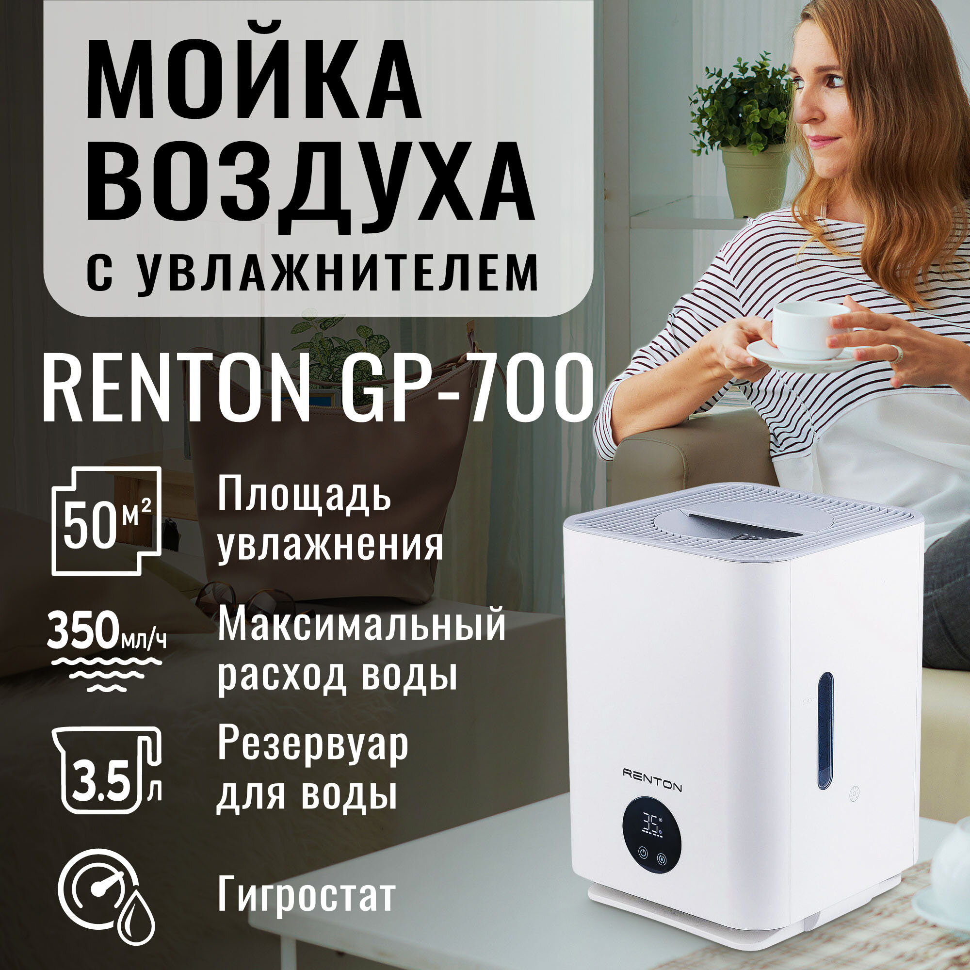 Мойка воздуха Renton GP-700 для аллергиков в квартиру и дом, очиститель воздуха с увлажнением, УФ-лампа, бесшумная интересное: