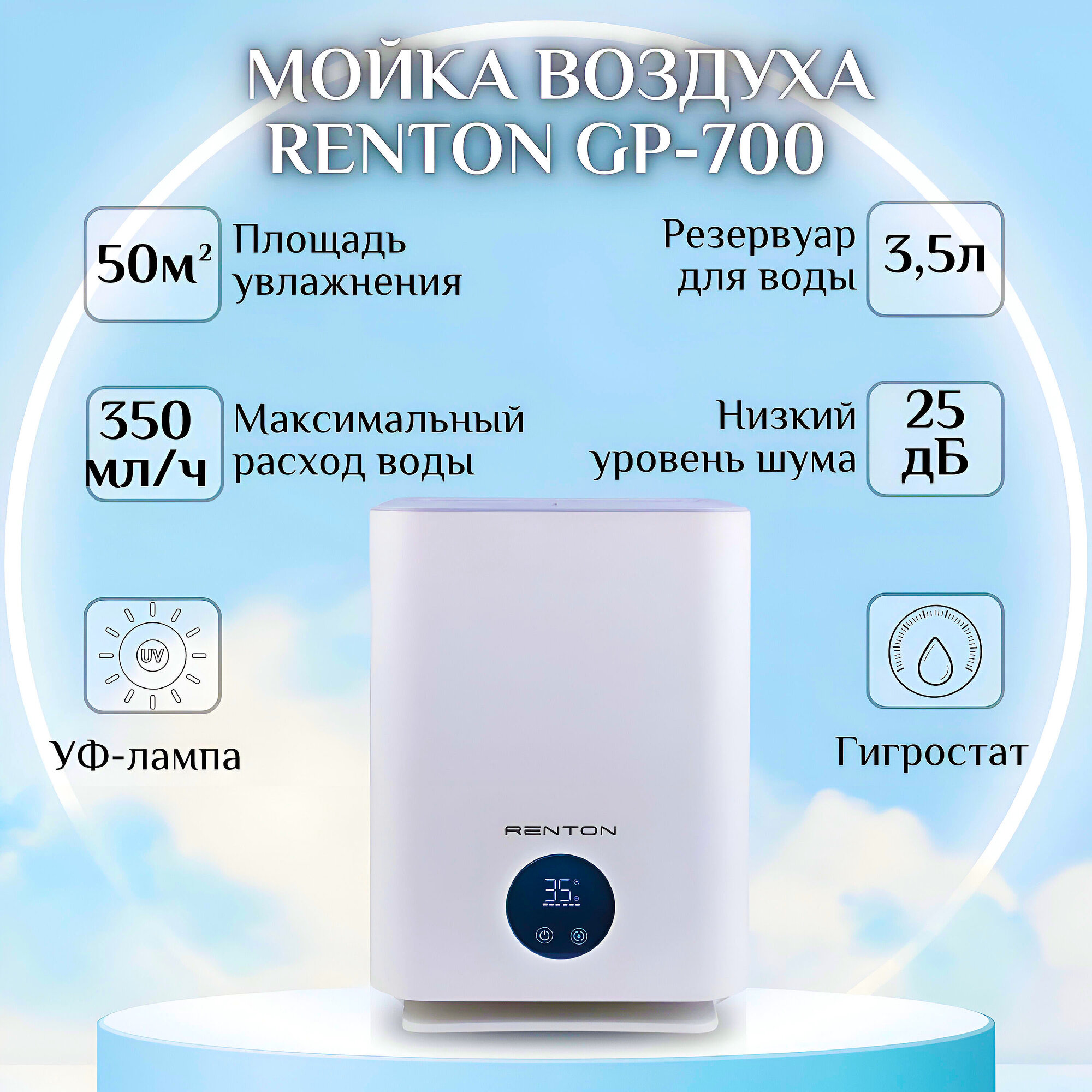 Купить Мойка воздуха Renton GP-700 для аллергиков в квартиру и дом, очиститель воздуха с увлажнением, УФ-лампа, бесшумная