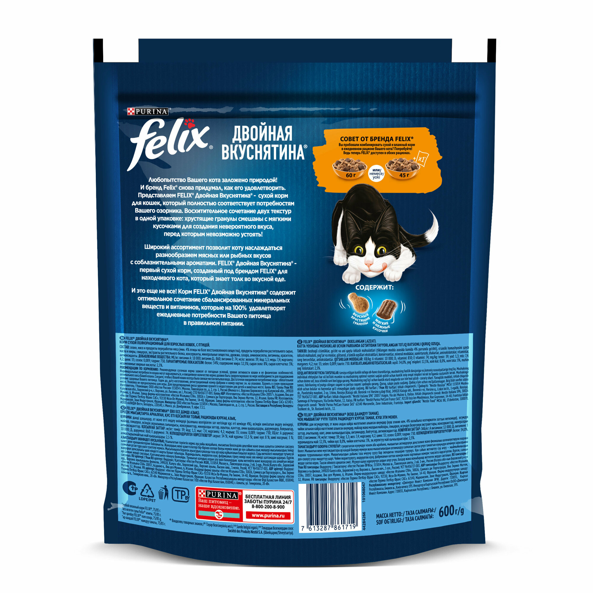 Корм для кошек сухой Felix / Феликс Мясное объедение для взрослых животных, гранулы с курицей 600г / кошачья еда для ежедневного кормления