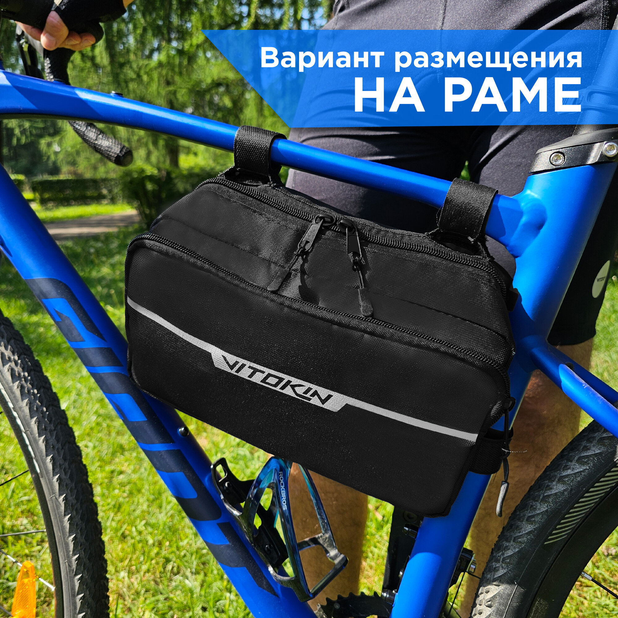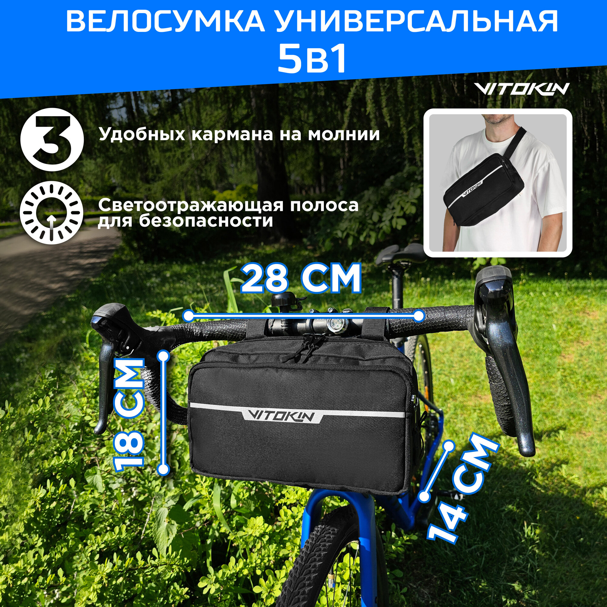 Велосумка на руль спортивная с ремнем для пояса VITOKIN, черная интересное: