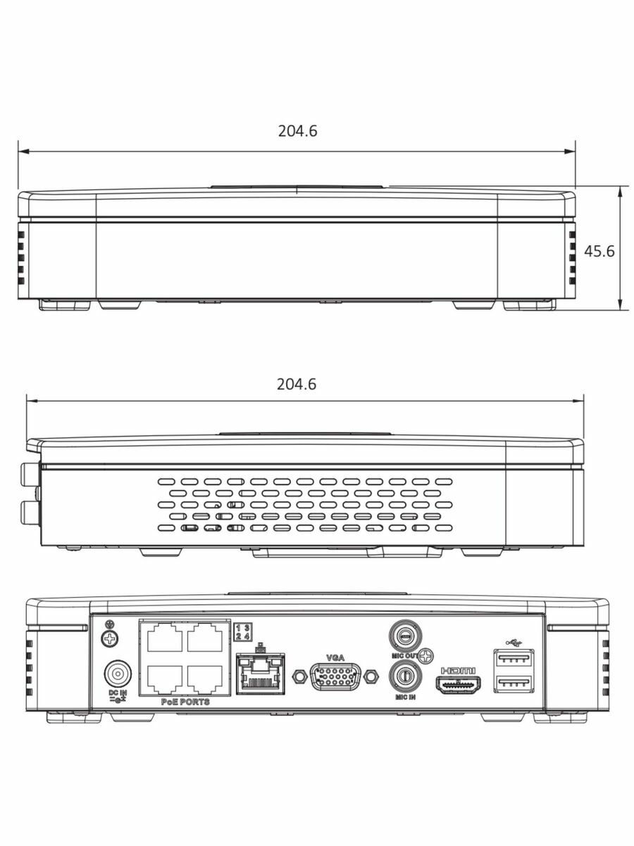 Видеорегистратор DAHUA DHI-NVR2104-P-4KS2 4-канальный, HDMI, RJ45, VGA, 1 отсек/HDD, 2хUSB, SATA