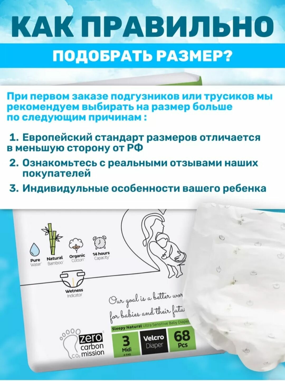 Ниже Вы можете прочитать отзывы на ЭКО Подгузники детские Sleepy Natural размер 3 (4-9кг.) 68 шт, ознакомится с подробными характеристиками, посмотреть интересные обзоры и фотографии на ЭКО Подгузники детские Sleepy Natural размер 3 (4-9кг.) 68 шт.