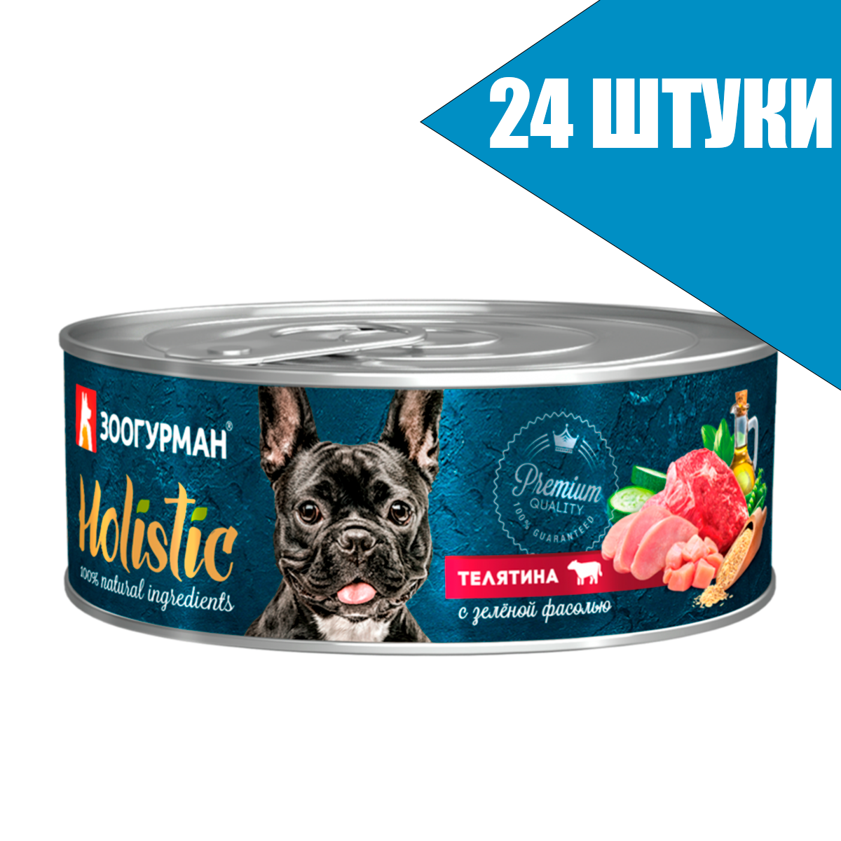 Зоогурман Holistic для собак Телятина с зеленой фасолью, консервы 100г (24 банки)
