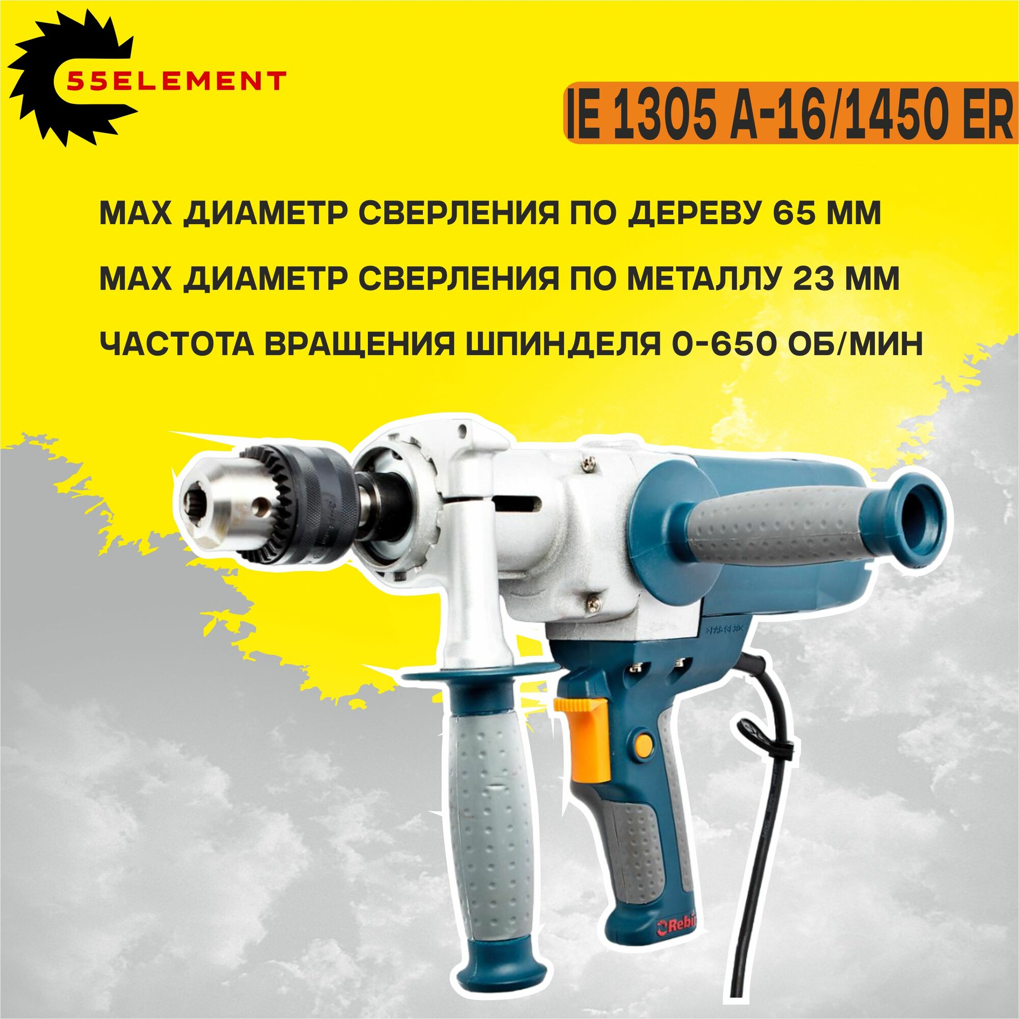 Дрель Rebir IE 1305A-16/1450 ER с дополнительной ручкой IE 1305 A-16/1450ER .
