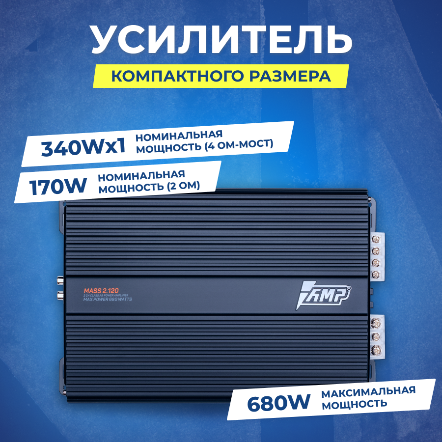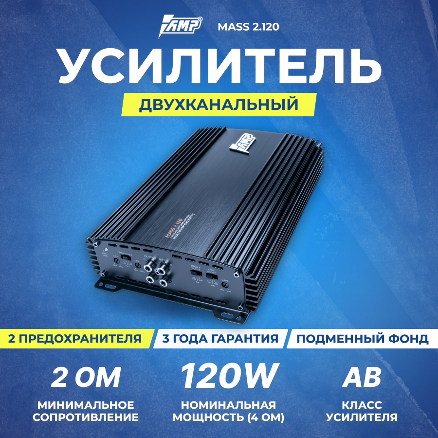 Автомобильный усилитель звука AMP MASS 2.120 двухканальный интересное: