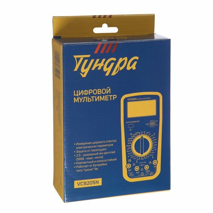 Тундра Мультиметр тундра, VC9205N, ACV/DCV, ACA/DCA, 200-200MΩ, 20nF-200mF, прозвон