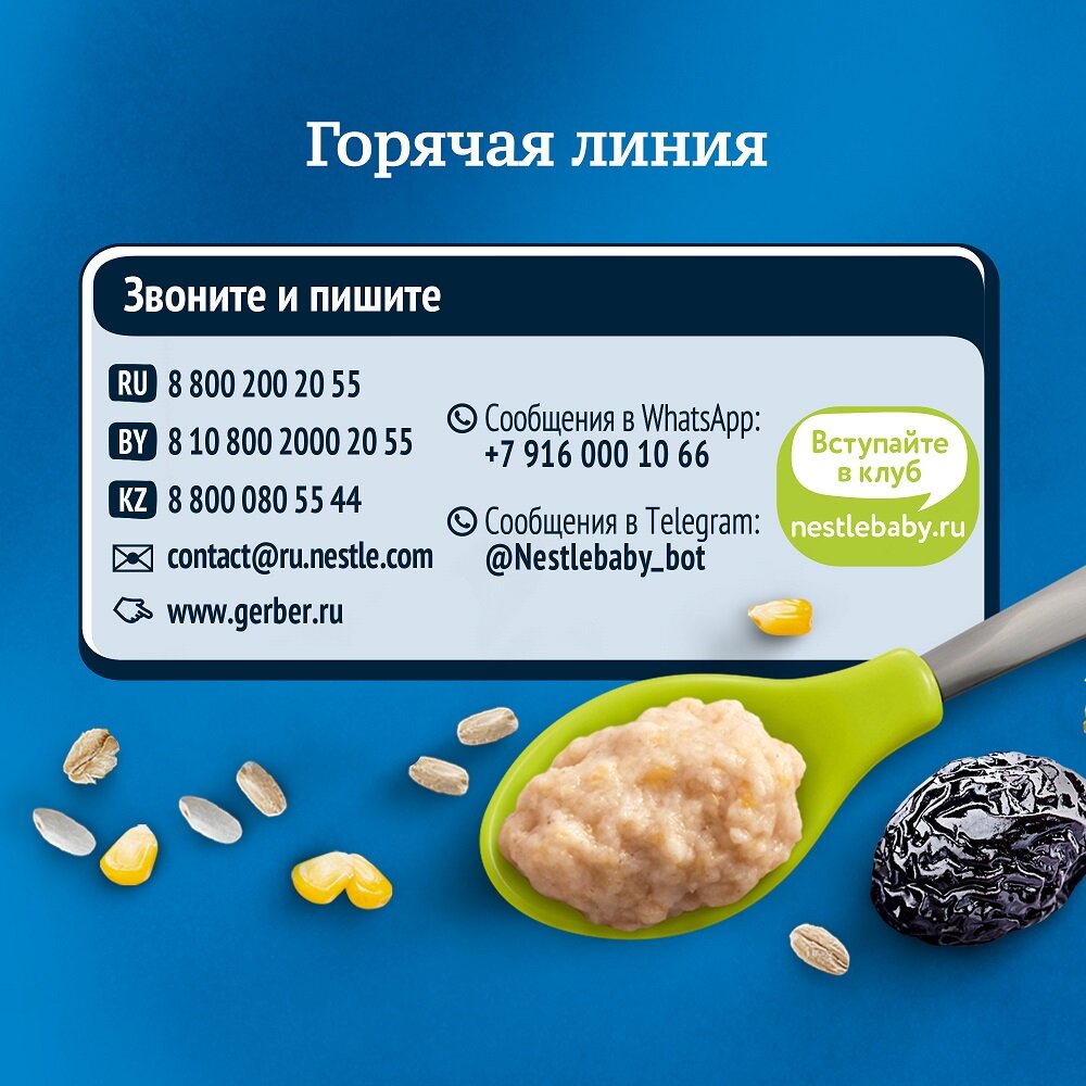 Каша безмолочная мультизлаковая с яблоком и черносливом, с бифидобактериями GERBER, с 6 мес. 180г