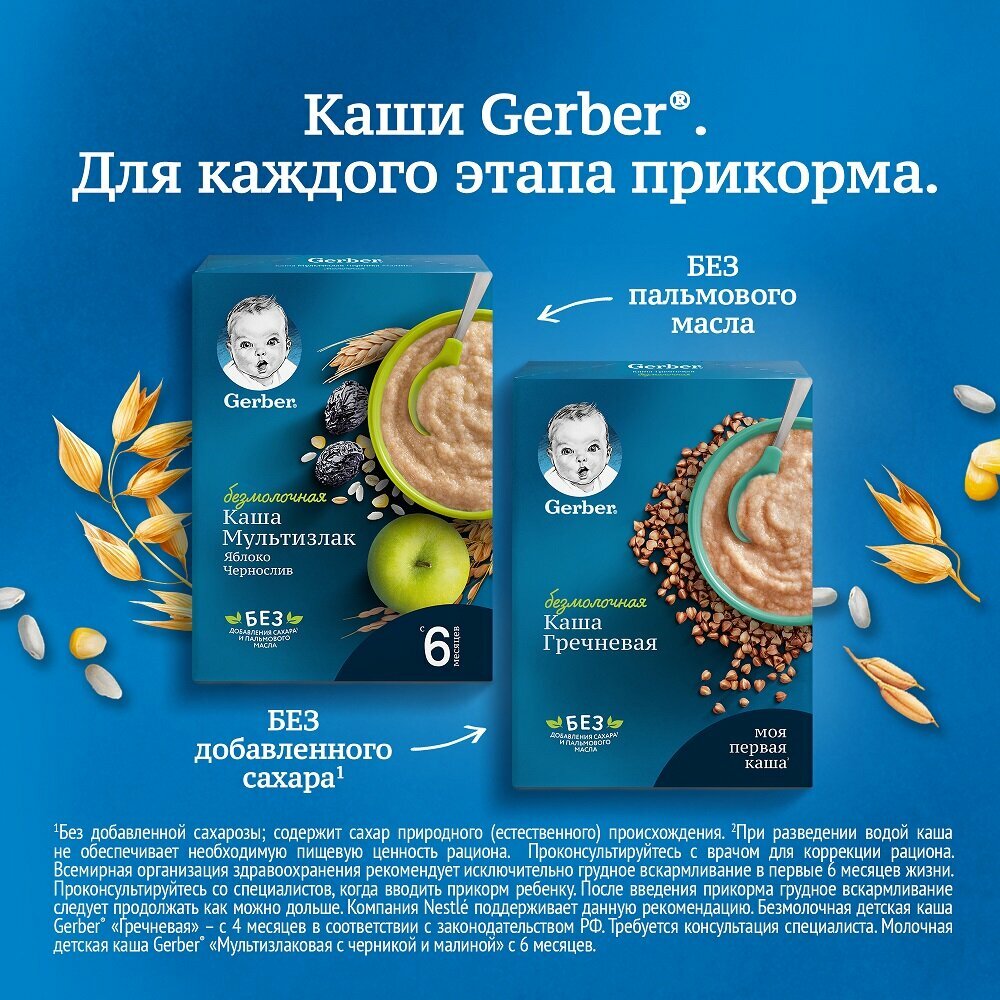 Каша Gerber Мультизлак яблоко и чернослив безмолочная с 6 месяцев, 180г