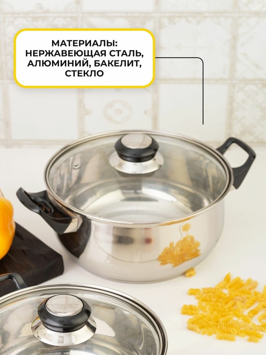| Комплектация | 2 кастрюли: 2 л, 2.8 л; крышка (2 шт.) |