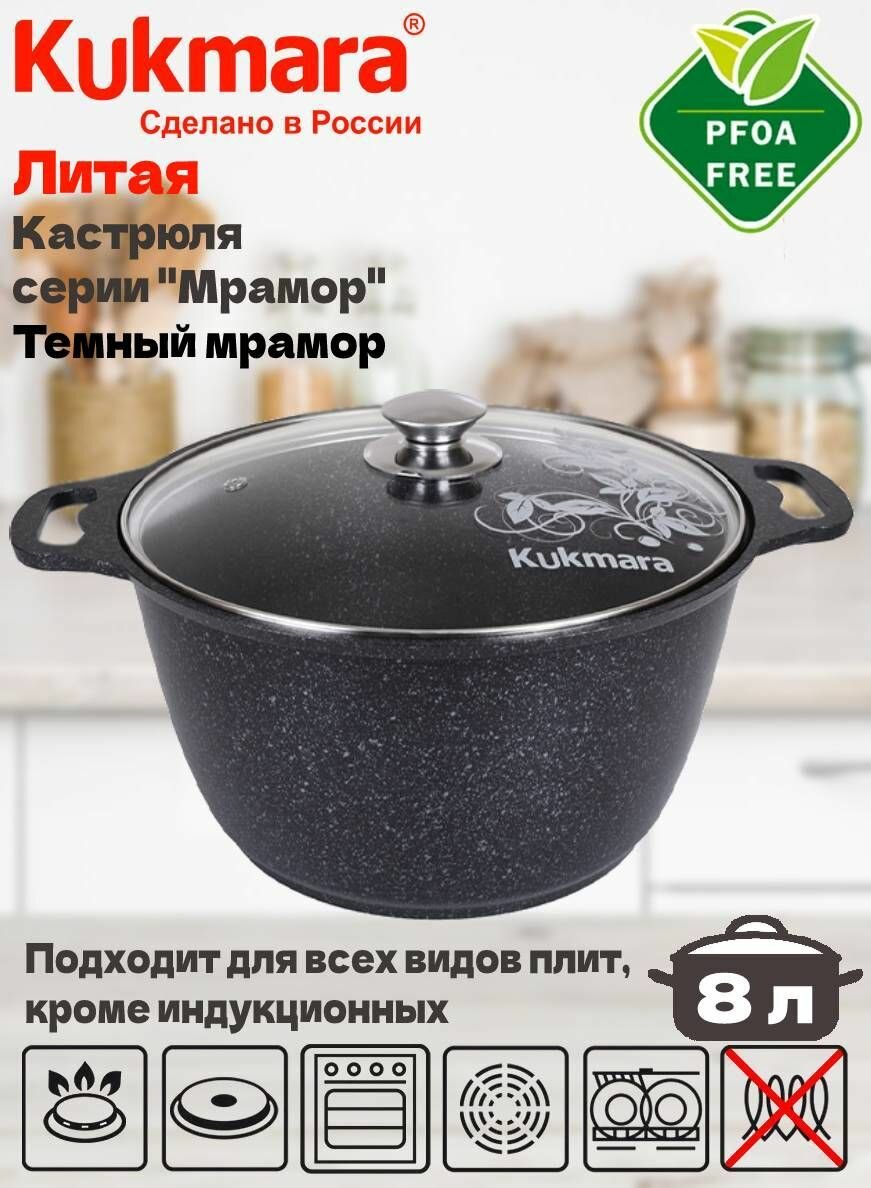 Купить Кастрюля 8 л KUKMARA кмт82-1а, алюминий, темный мрамор