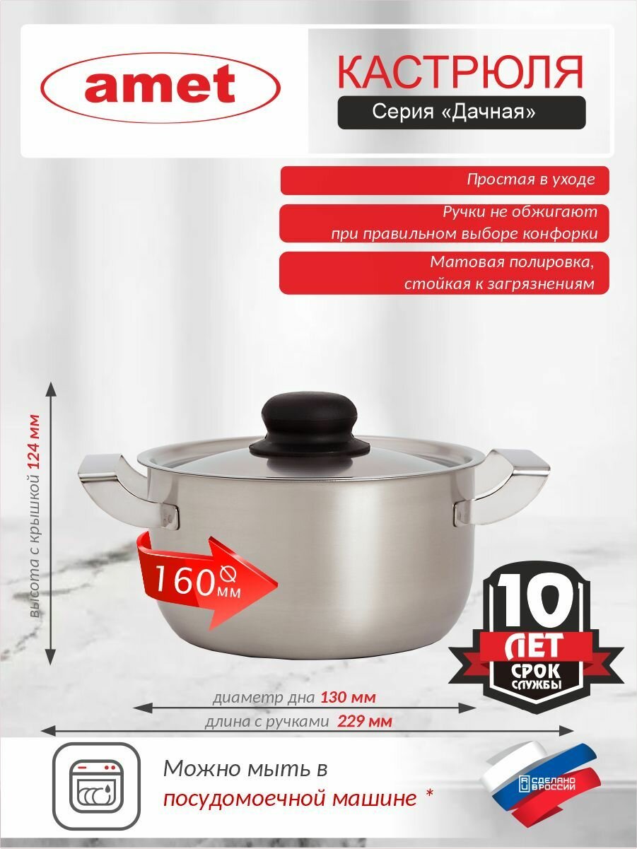 Амет 1с813 дачная, Кастрюля 1,5л (d: 160мм, нержавеющая сталь) интересное: