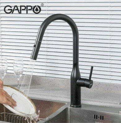 Смеситель для кухни Gappo G4398-46 с выдвижной лейкой, черный