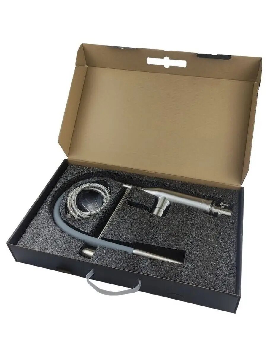 Смеситель для кухни Gappo G4398-55 с гибким изливом, серый/сатин