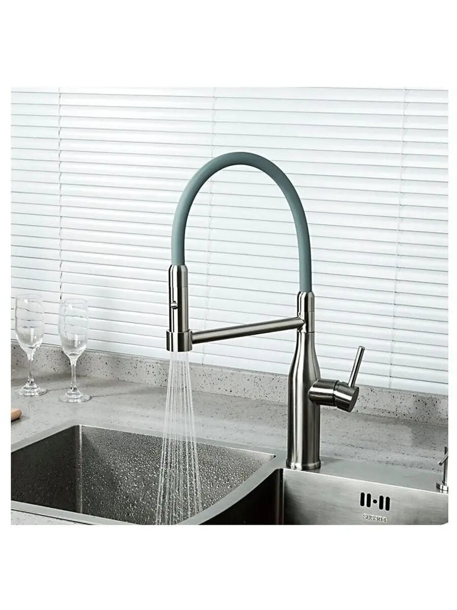 Смеситель для кухни Gappo G4398-55, гибкий излив, однорычажный, серый/сатин