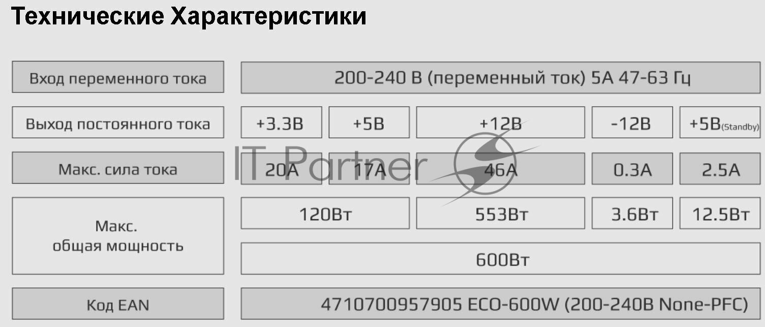 Блок питания ECO-600 - 600W , ATX v2.3 , Fan 12cm , Retail