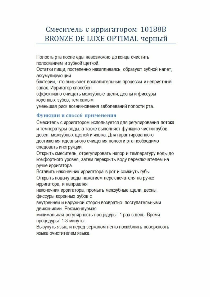 Смеситель для раковины с ирригатором Bronze de Luxe Optimal 10188B черный интересное: