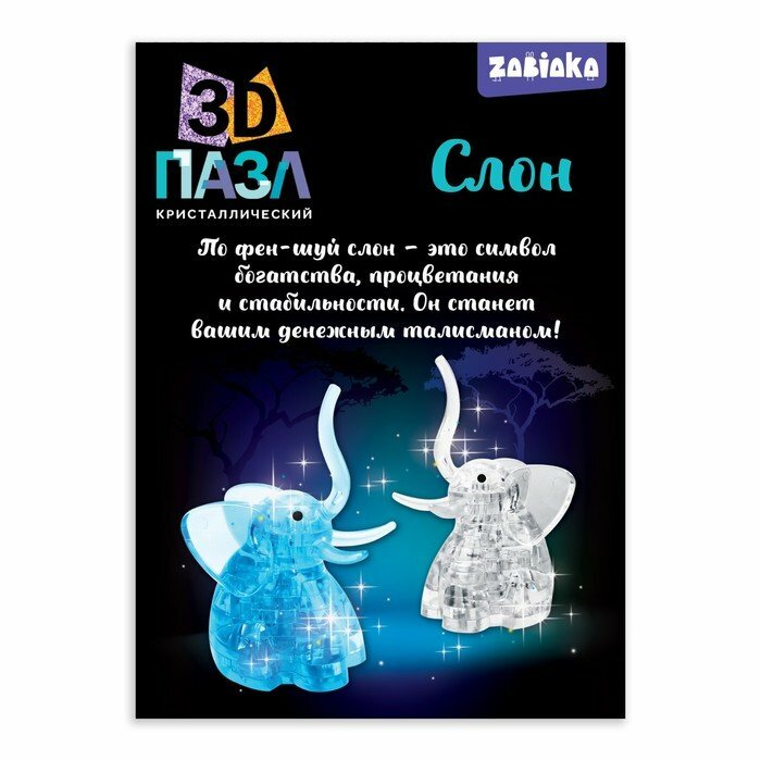 ZABIAKA Пазл 3D кристаллический «Слон», 20 деталей, цвета микс