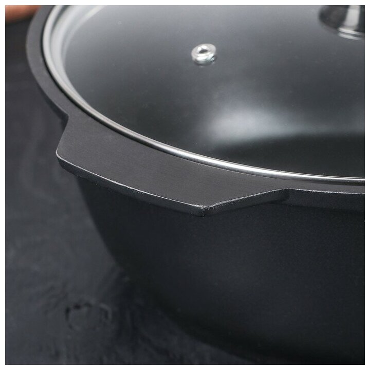 Жаровня «Традиция», 3 л, d=26 см, стеклянная крышка, антипригарное покрытие, цвет чёрный