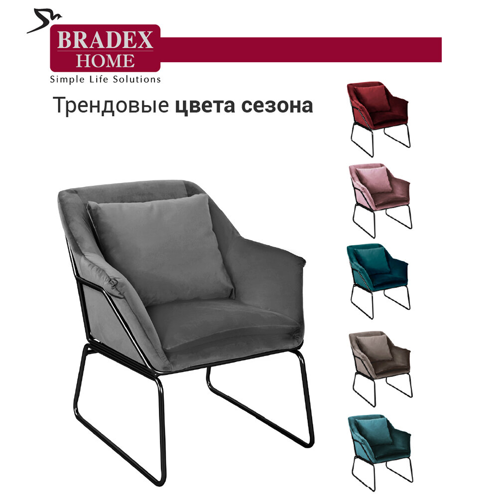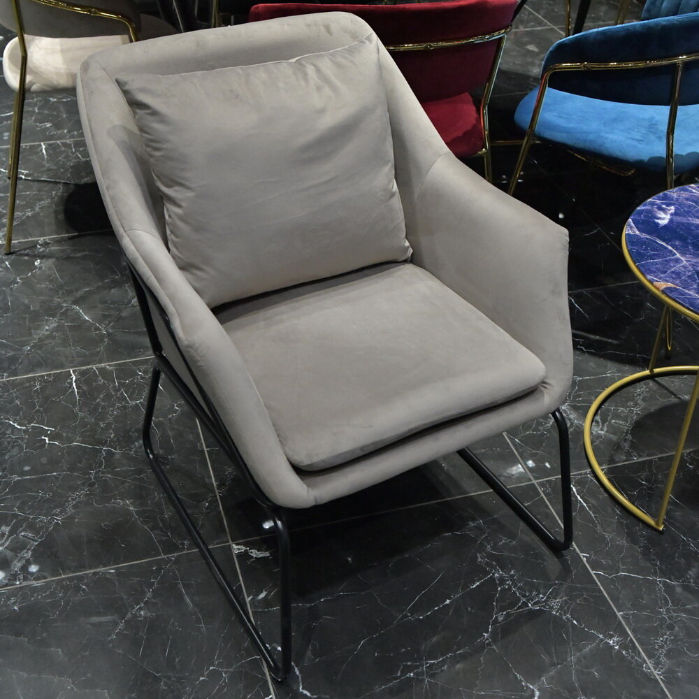 СохранитьКресло с подушкой мягкое велюр ALEX серое, для отдыха, на черных металлических ножках, офисное, интерьерное для дома в гостиную и на кухню интересное: