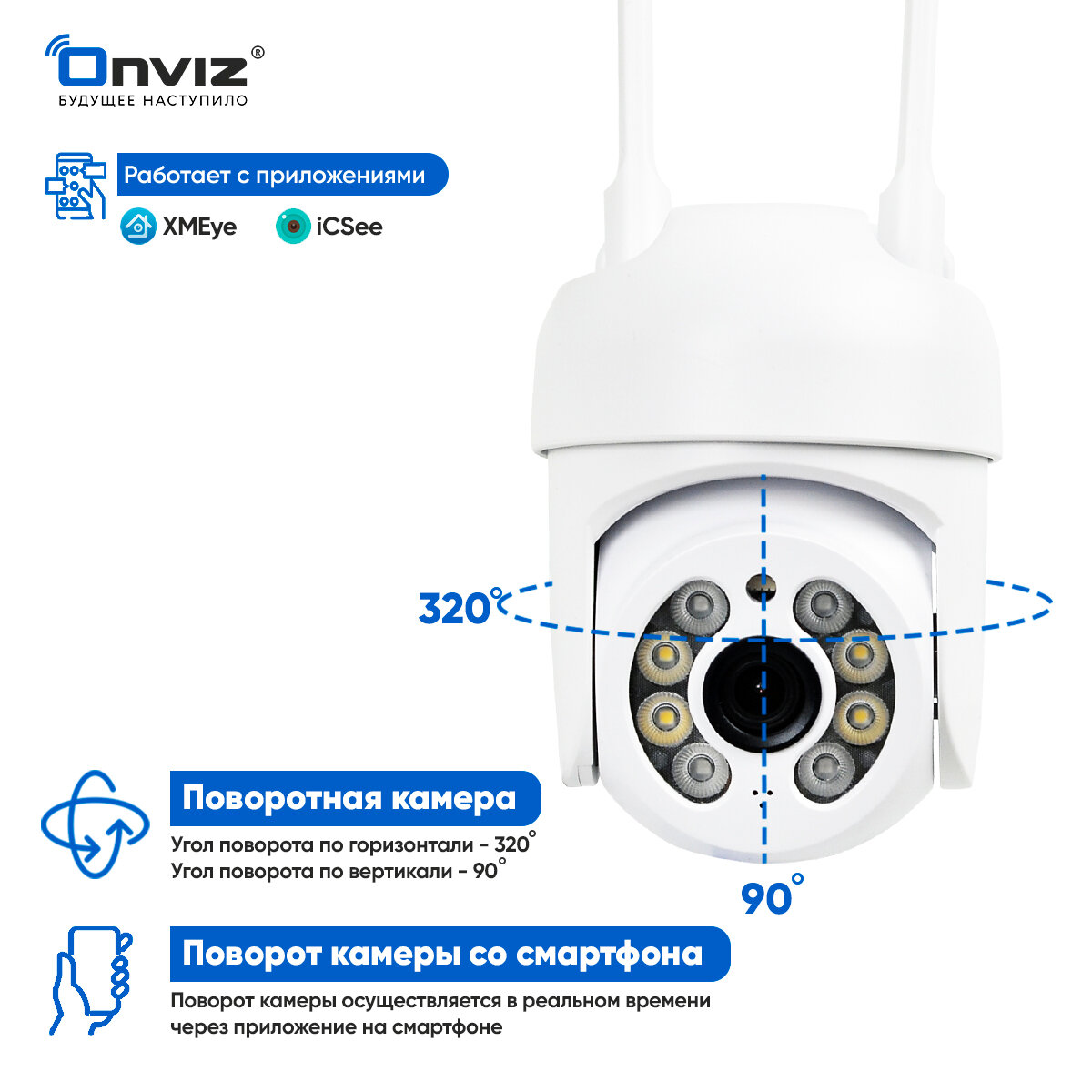 Купольная поворотная IP WiFi 8Мп камера видеонаблюдения OnvizU70, беспроводная уличная камера видеонаблюдения