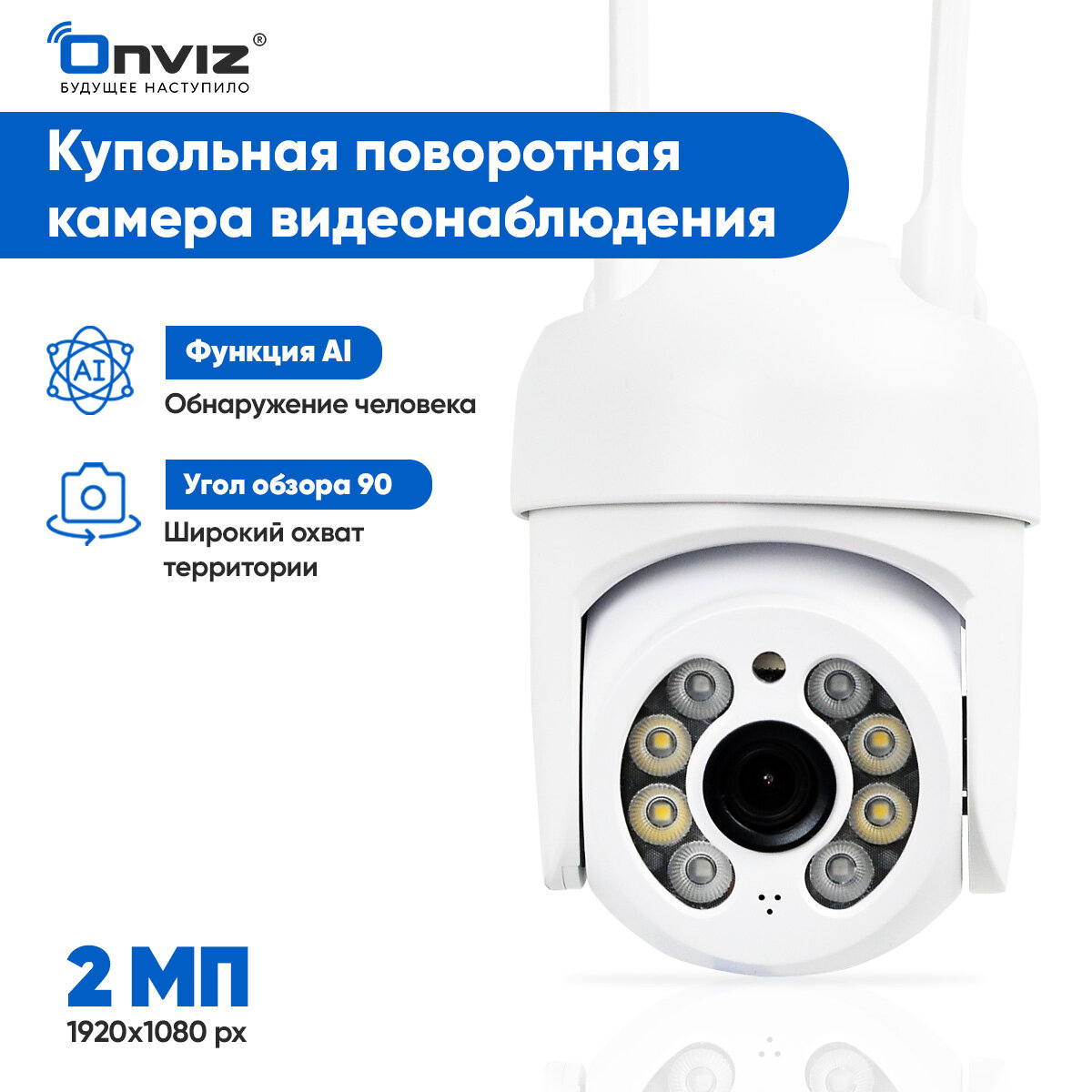 Купольная поворотная Wi-Fi камера видеонаблюдения Onviz U70 беспроводная 2 Мп / уличная камера / наружная / для дома / для дачи