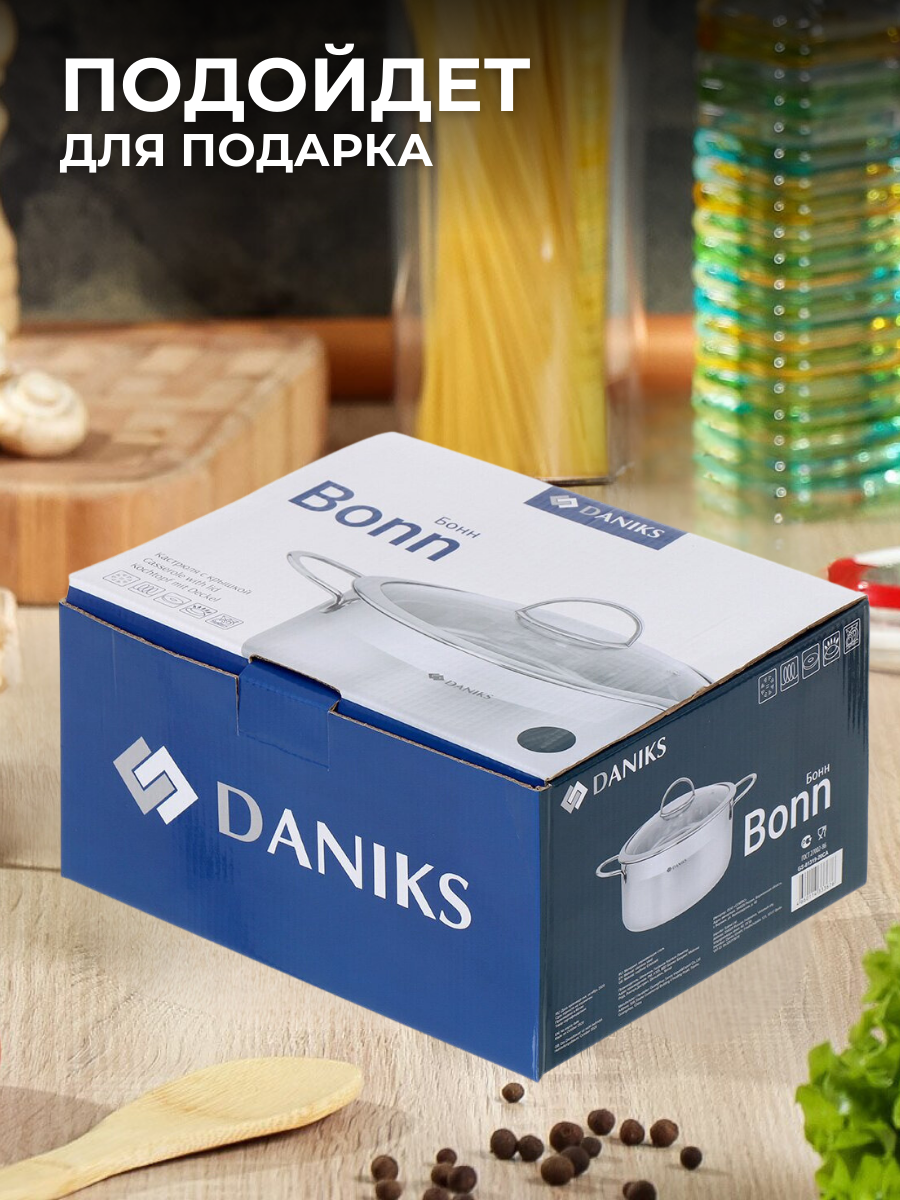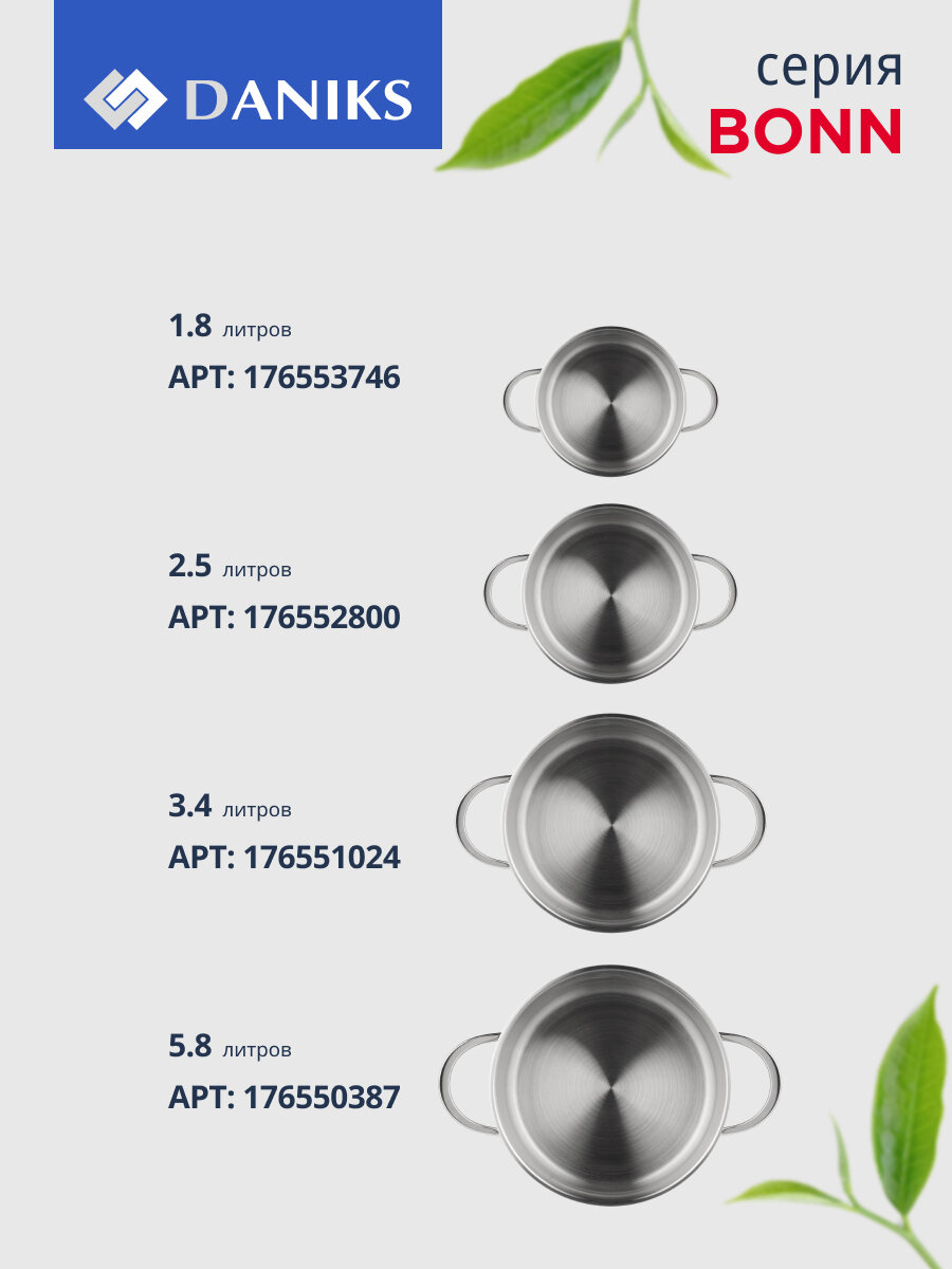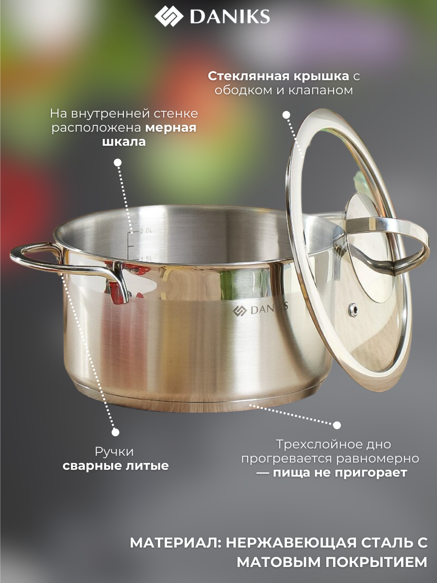 Купить Кастрюля из нержавеющей стали с крышкой Daniks, 2.5 литра