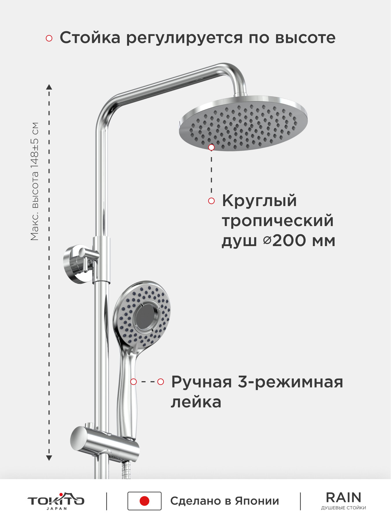Душевая система Tokito Rain с верхним душем d200 мм с лейкой d112 мм без смесителя (TOK-RAI-1015)