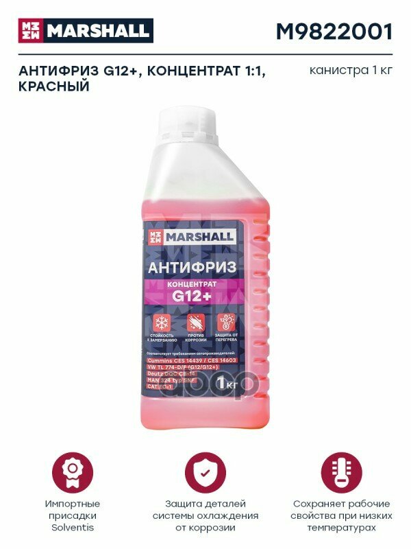 Антифриз G12+, Концентрат 11, Красный, Канистра 1 Кг. MARSHALL арт. M9822001 интересное: