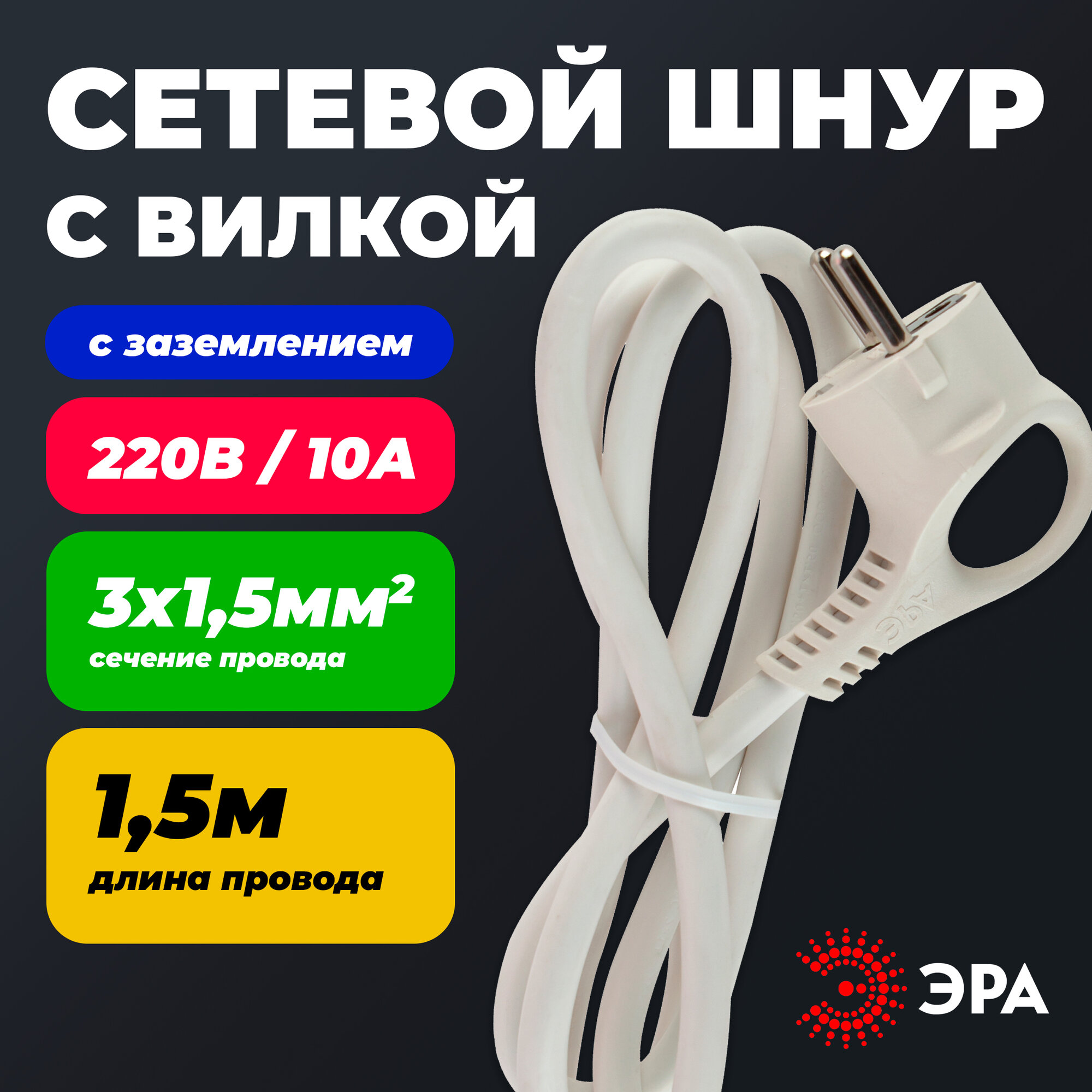 Купить Сетевой шнур с вилкой ЭРА с заземлением 1,5 м