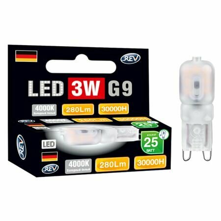 Лампочка светодиодная REV, JCD G9 3W 4000K, дневной свет